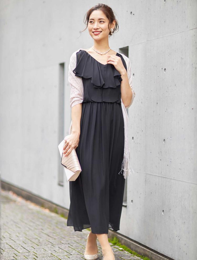 すっきりとシックな着こなしができるブラックのドレスは様々なシーンで活躍ができ、幅広い方に人気の高いカラーです。
