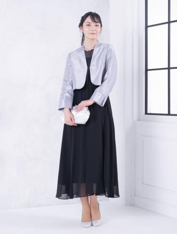 ジャケットやボレロを合わせる時は、女性らしく柔らかい印象を与えてくれるベージュ系や、すっきりとシャープな印象を与えられるシルバーがおすすめです。逆に、ネイビーやブラックの羽織を合わせると、たとえラメ入りの小物でも地味な印象となってしまいます。色味のメリハリを意識してコーディネートを考えると◎
