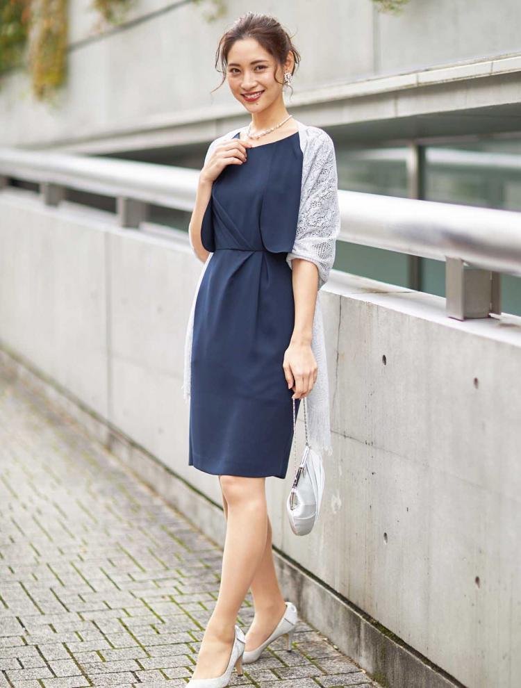 <どんなシーンにも使いやすいネイビーのドレス>
