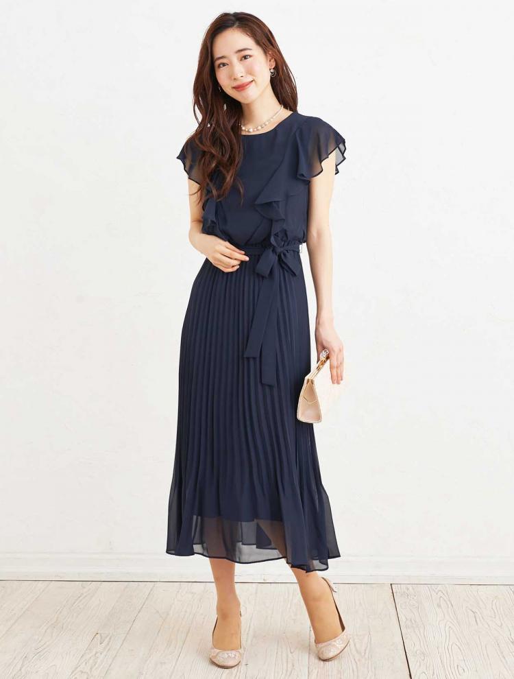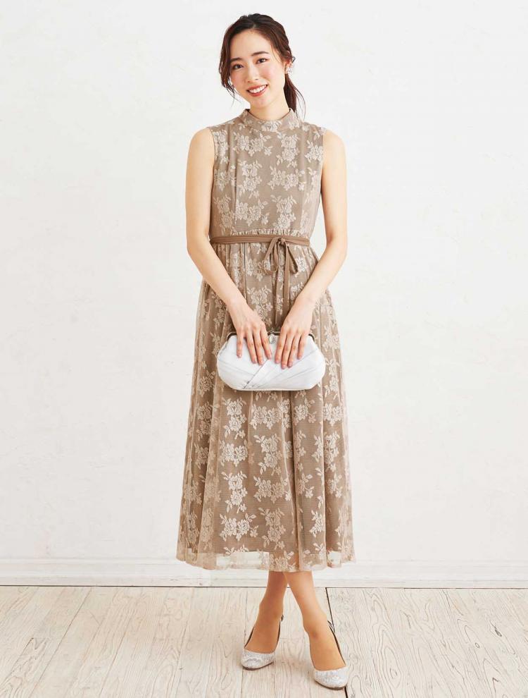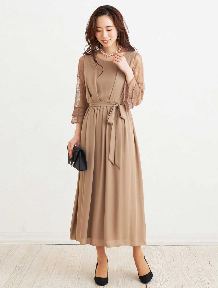 幅広い年代が出席される場合には、ある程度の袖丈があり、ひざ下~ふくらはぎ辺りのミディ丈~ロング丈のドレスがおすすめです。