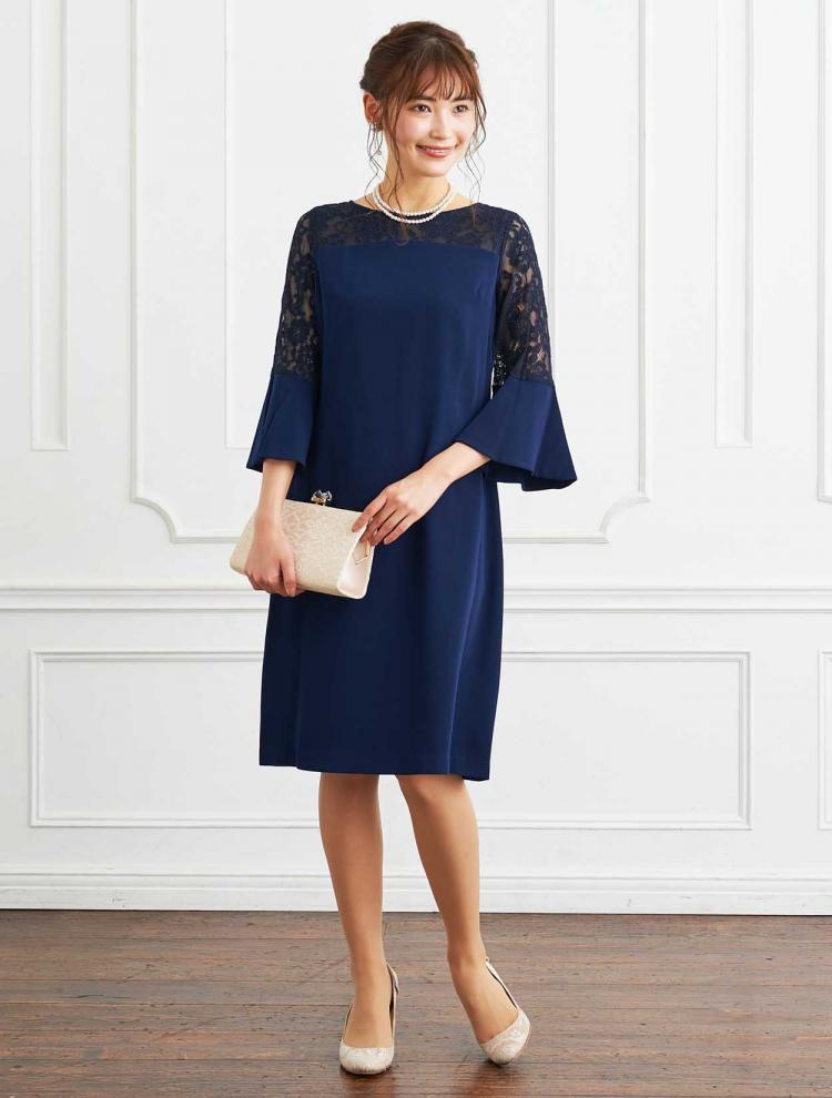 充分な袖丈のあるドレスは、ショールやボレロなどを羽織らず、ドレス1枚で結婚式や披露宴に出席できるため人気の高いお呼ばれドレスです。気になる二の腕もおしゃれにカバーしてくれる袖付きのドレスですが、袖丈が長いタイプのデザインを夏場など暑い時期に着る場合は、軽やかで透け感のあるシフォン素材のものや、通気性のよいレース素材を選んであげると、見た目も着心地も爽やかに着ていただけます。