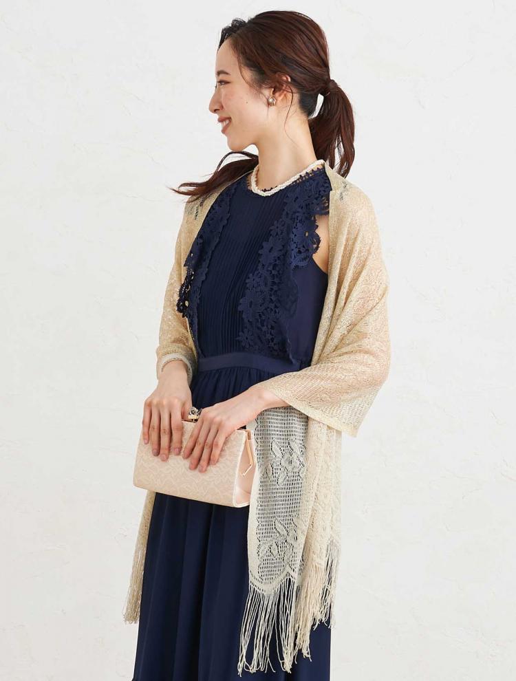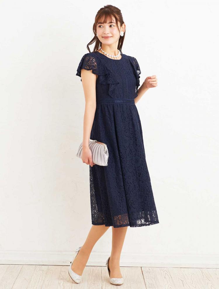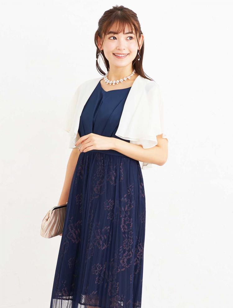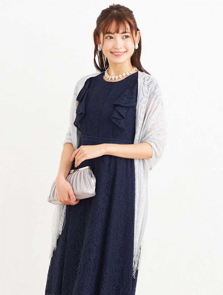 レースの使われたドレスなら、落ち着いた色味でも品よく華やかでフォーマルな印象を与えられます。