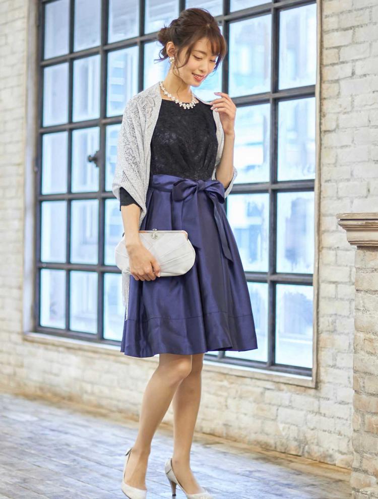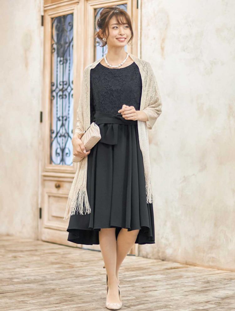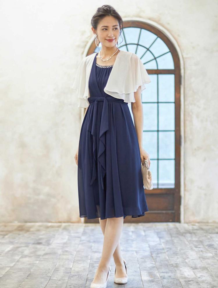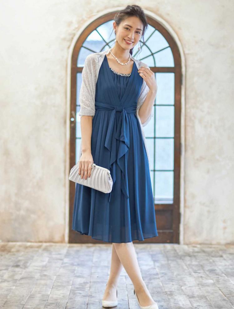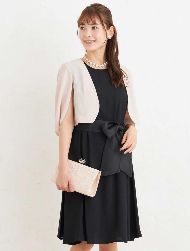 一番春らしい雰囲気を視覚的に感じるのがカラー。中でもお花をイメージさせる「ピンク」や、木々の新芽をイメージさせる「グリーン」が人気。また、優しい印象の「ベージュ」も春におすすめです。春のベージュドレスのコーディネートは、定番ブラックではなくゴールドやピンクなど明るい色合いがおすすめです。また、季節問わず着られるネイビーやブルーのドレスも春に着ても大丈夫。透け感のある素材などで軽やかに着こなすのがポイントです。