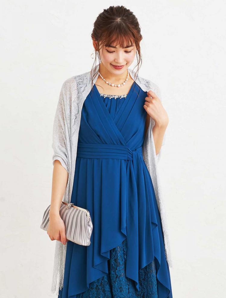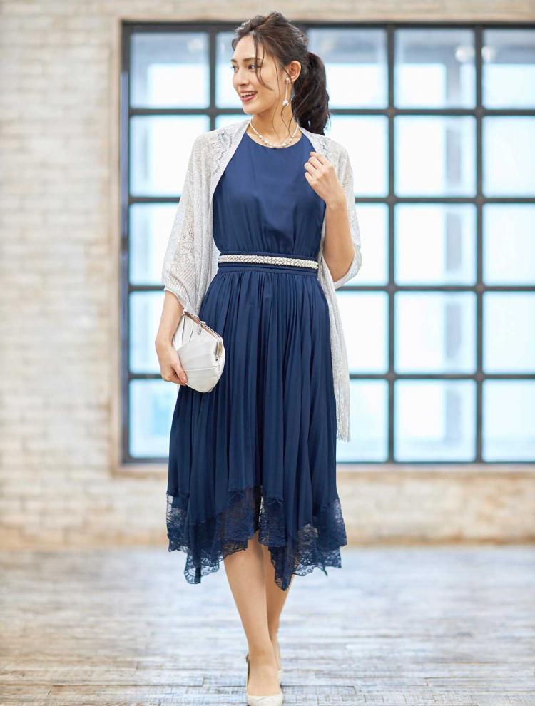 人気のデザインは「ロング丈」「ミモレ丈」。丈が長いドレスで春らしい雰囲気を出すには、スカートの裾がレースなどで透けているデザインのドレスがおすすめです。足元が透けていると重たさがありません。他にもたっぷりと「プリーツ」を使ったドレスも、動くたびにスカートが上品に揺れてきれいです。暖かい春になると冬の重たい羽織から解放された気持ちで、ドレスも一枚で着こなしたい方が増えてきます。「袖あり」デザインのドレスなら、暖かくなった時期には屋外でも一枚で着こなせるので、行き帰りもとても楽です。