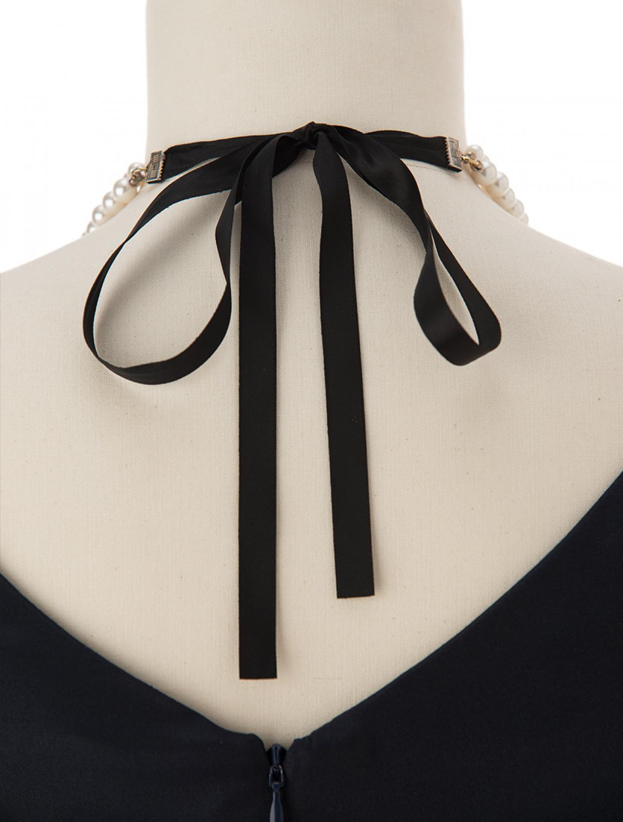 サテンリボン結びパール2連ネックレス(ブラック)