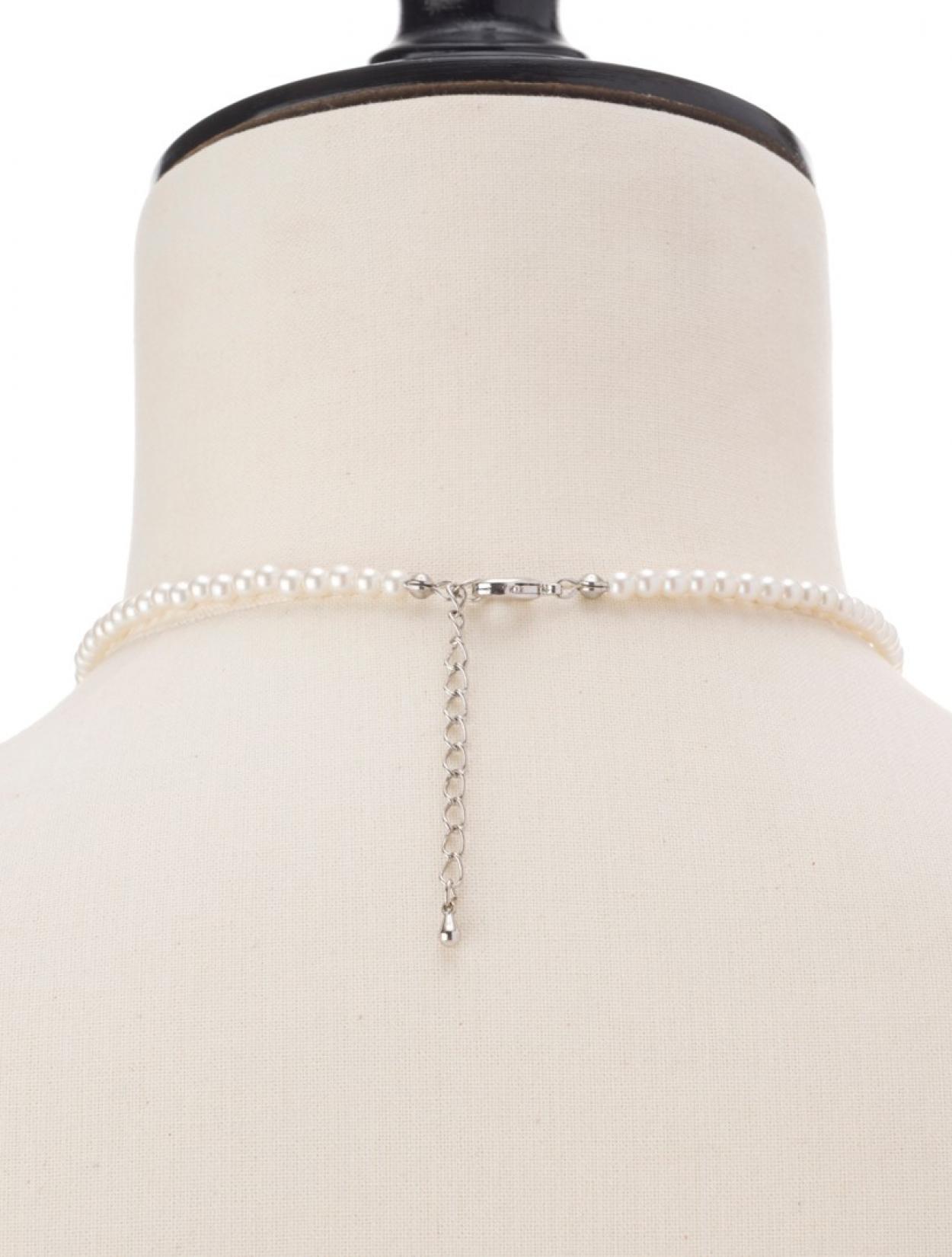 ■キラキラとしたミラーボール風ラインストーンパーツがアクセントになったパールのショートネックレス。