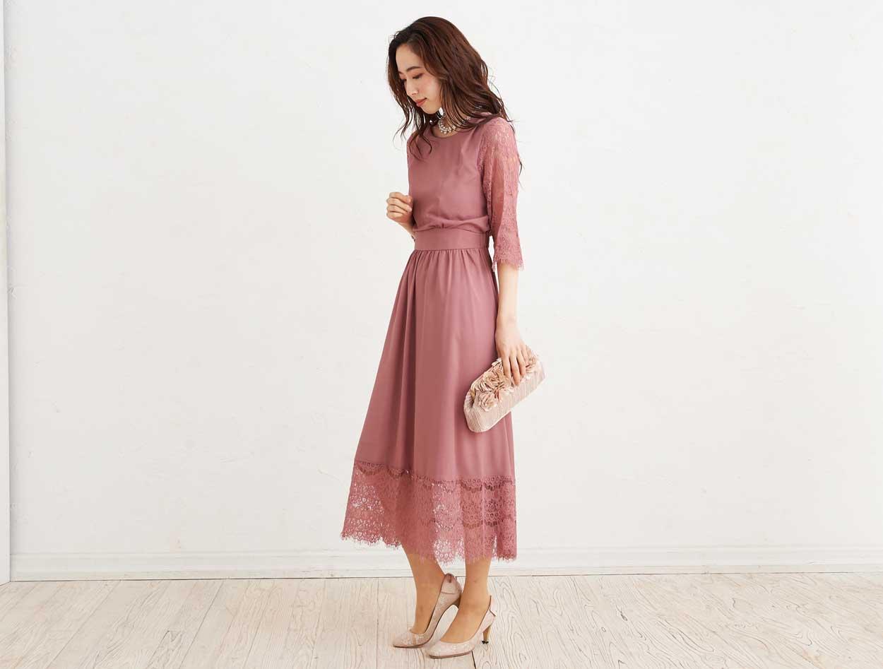 ■華やかで幸せを感じさせるピンクは、パーティードレスでも人気のカラー。
