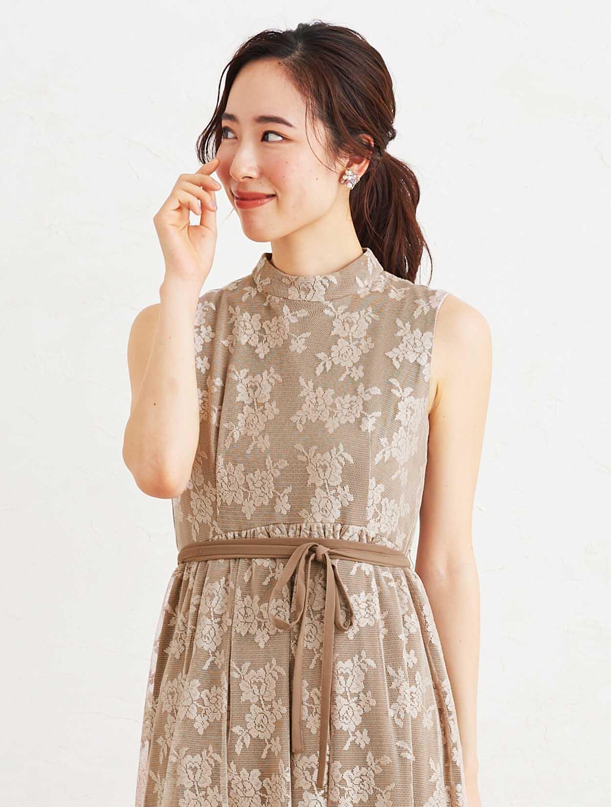 ■ベージュのドレスはアクセサリーや、合わせる小物を華やかに引き立ててくれるアイテムです。