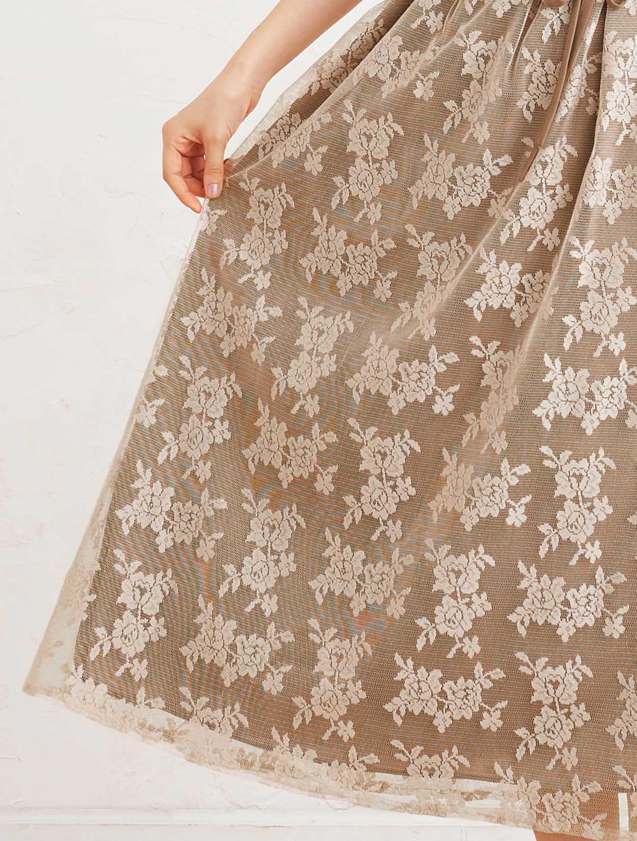 ■無地ライクなメッシュレースにフラワー柄が美しいロングドレス。