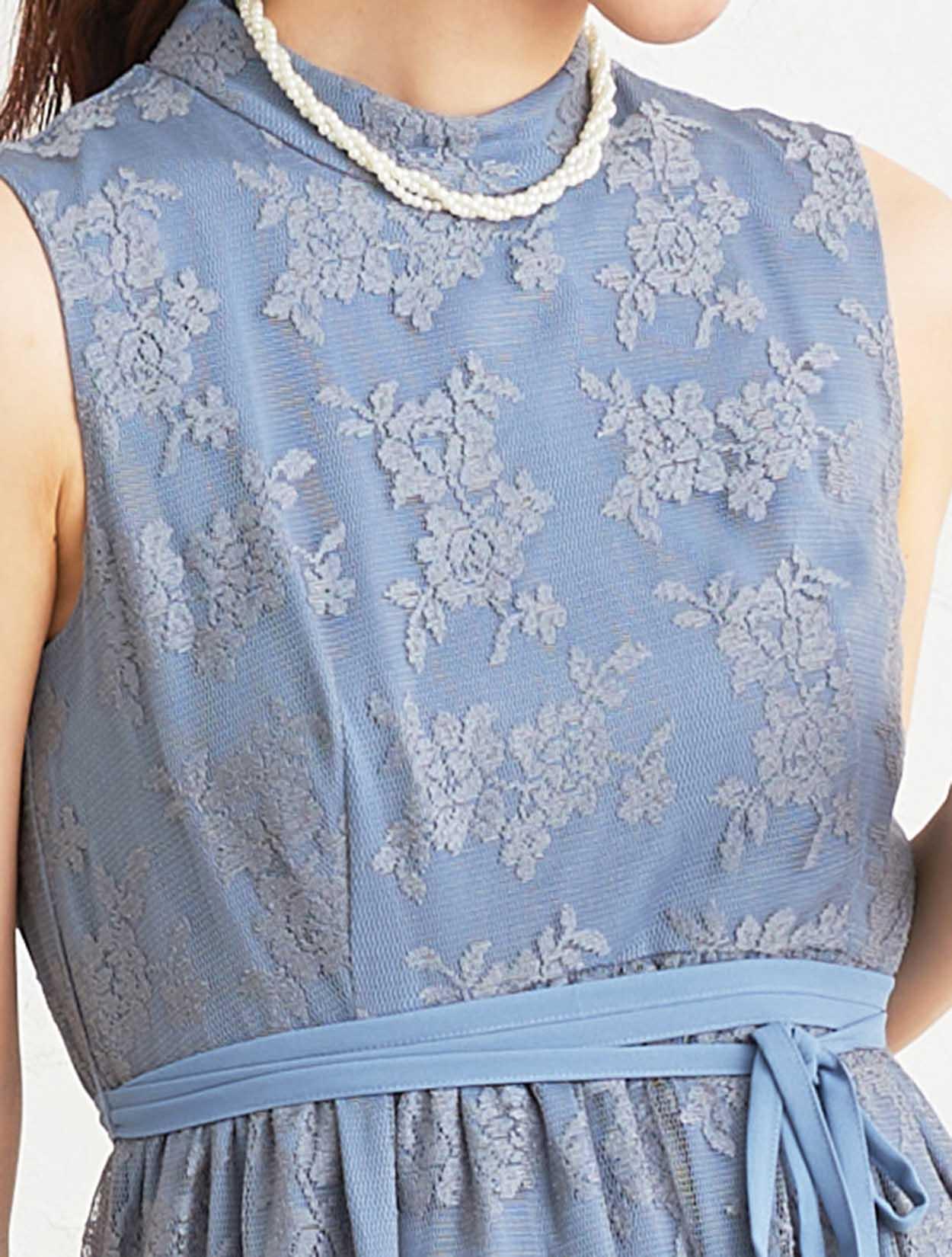 ■無地ライクなメッシュレースにフラワー柄が美しいロングドレス。