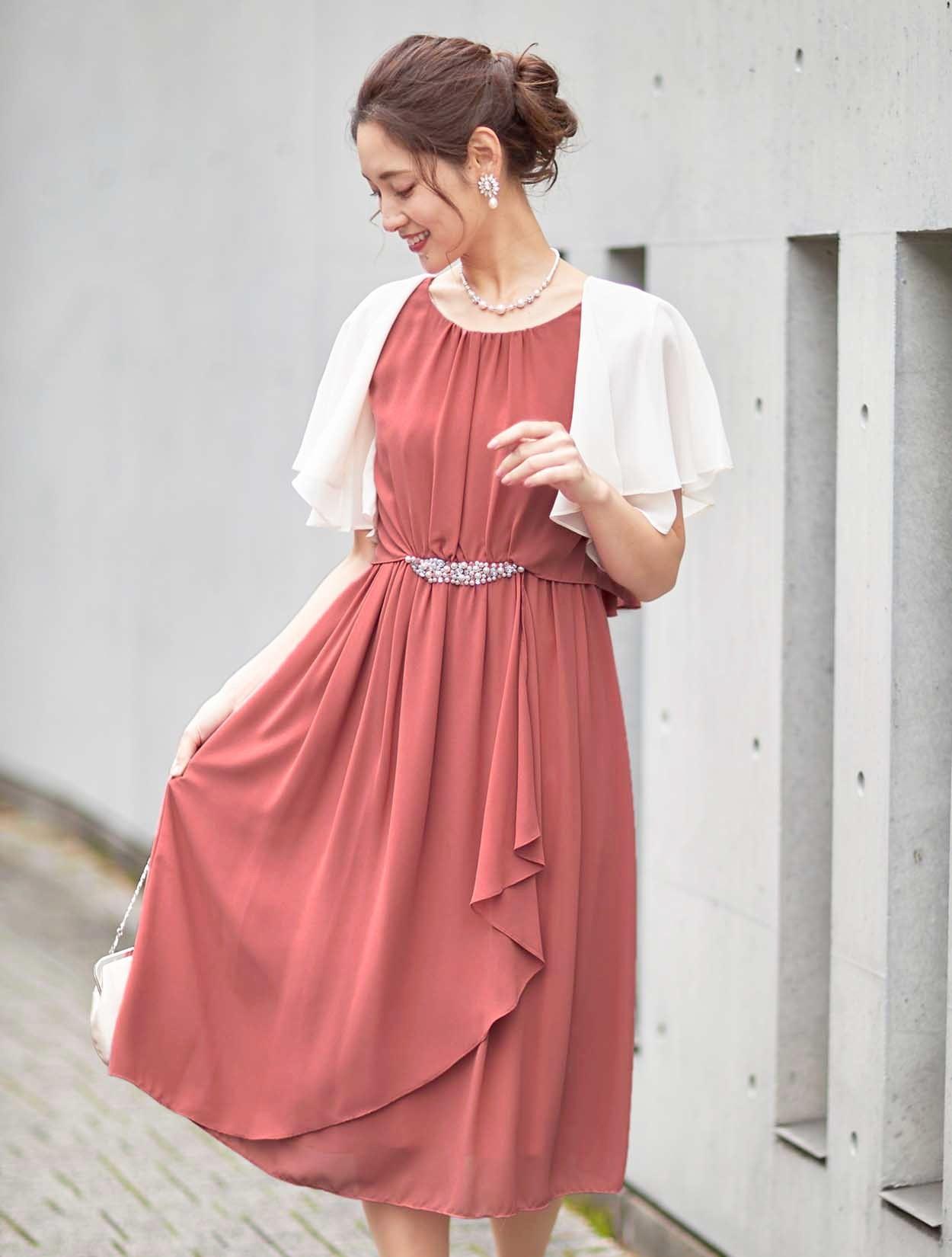 ■大人の女性でも着やすい綺麗なサーモンピンクのドレスです。