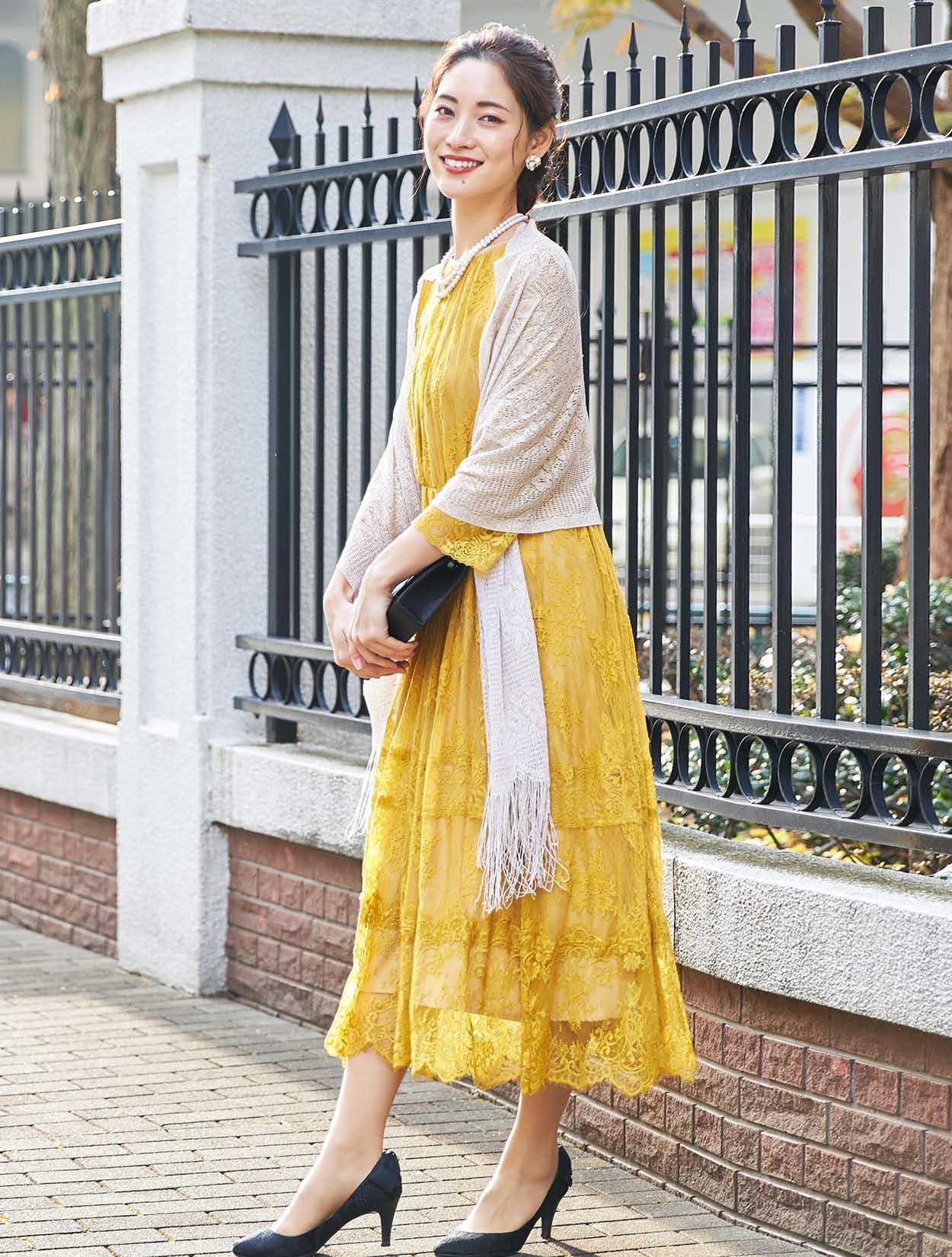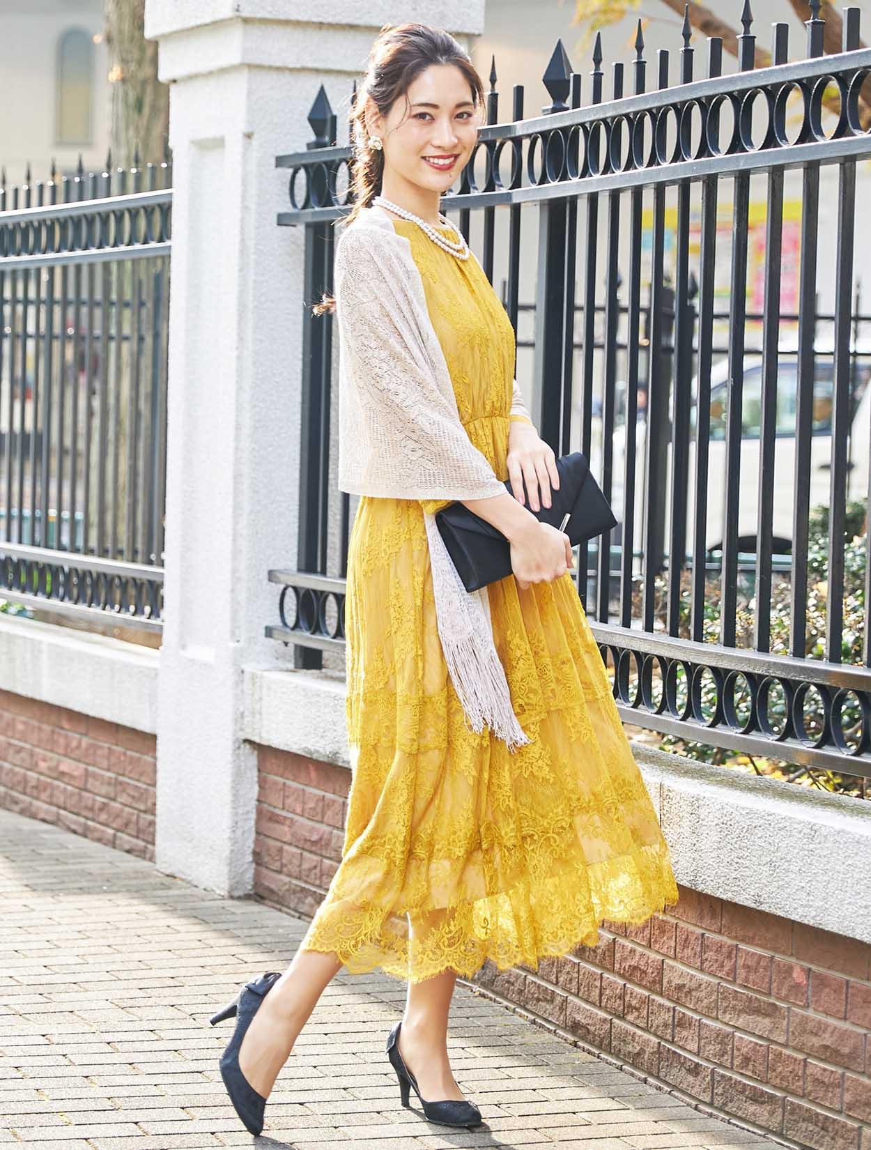 | A2. | はい、ご結婚式への参列もおすすめです。カジュアルに見えないよう、パールアイテムやパンプス等はフォーマルな印象のものを合わせ、パーティー用のヘアアレンジをするとフォーマル度が上がり素敵に仕上がります。 |