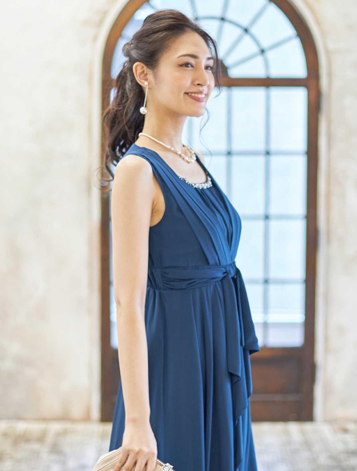 | A2. | ドレスの衿に装飾がついているものでしたらどちらでもOKなようですが、こちらのドレスの場合はシンプルなネックレスをお付けになる方が多いです。ヘアスタイルをアップにする際は特に首周りに空きが出ますでの、なにかネックレスをつけられるとバランスが良いかと思います。 |
