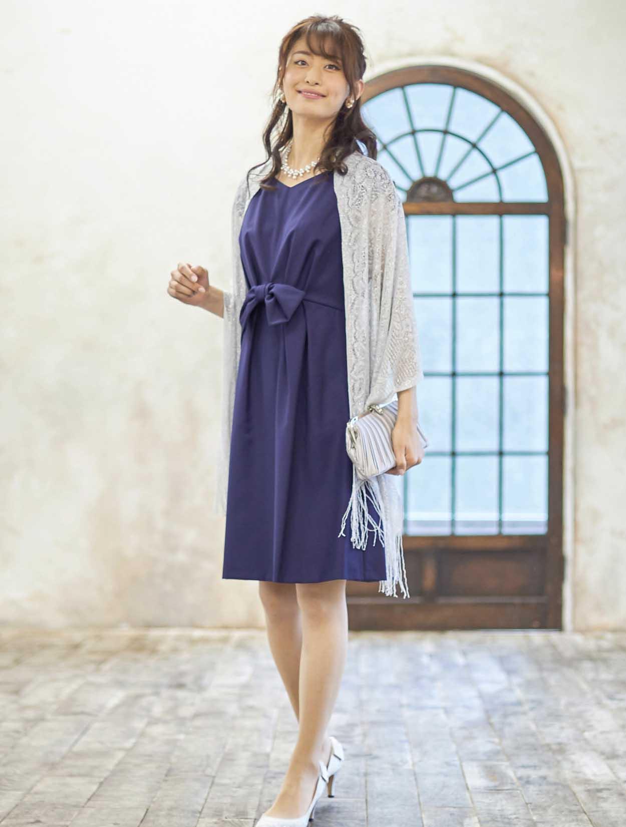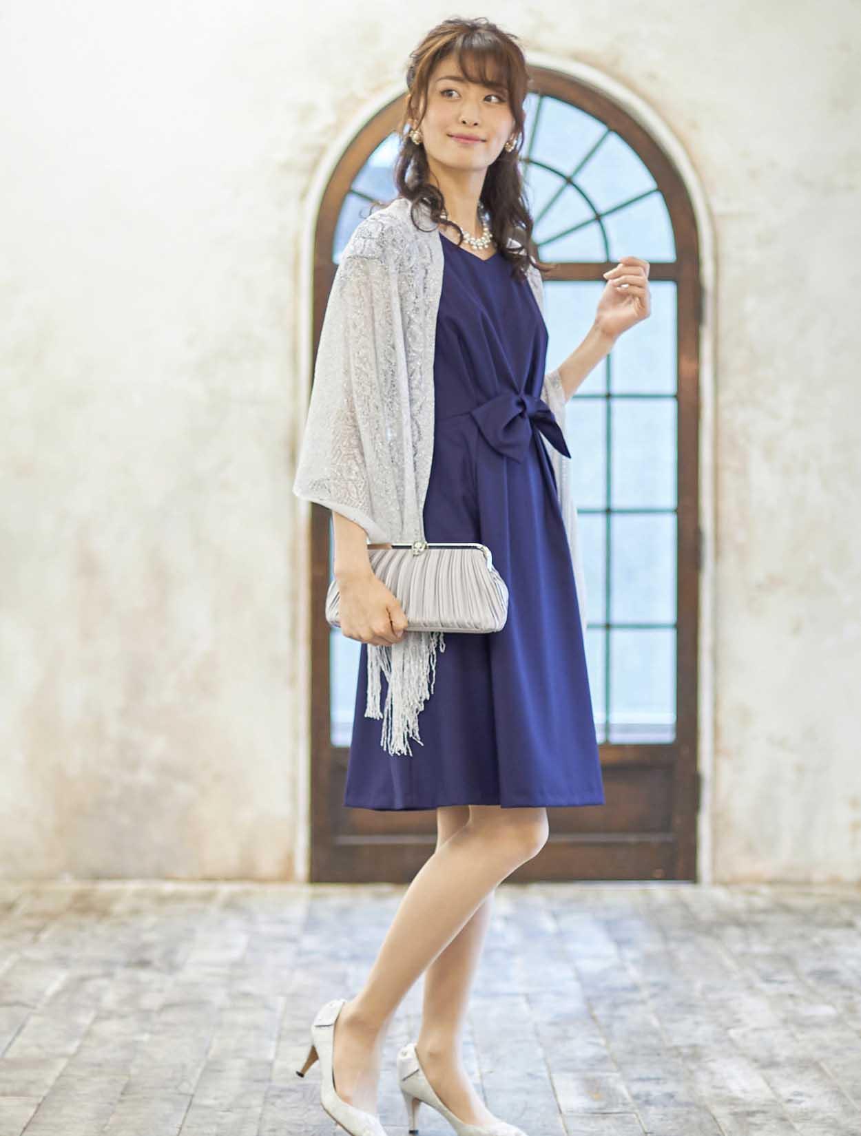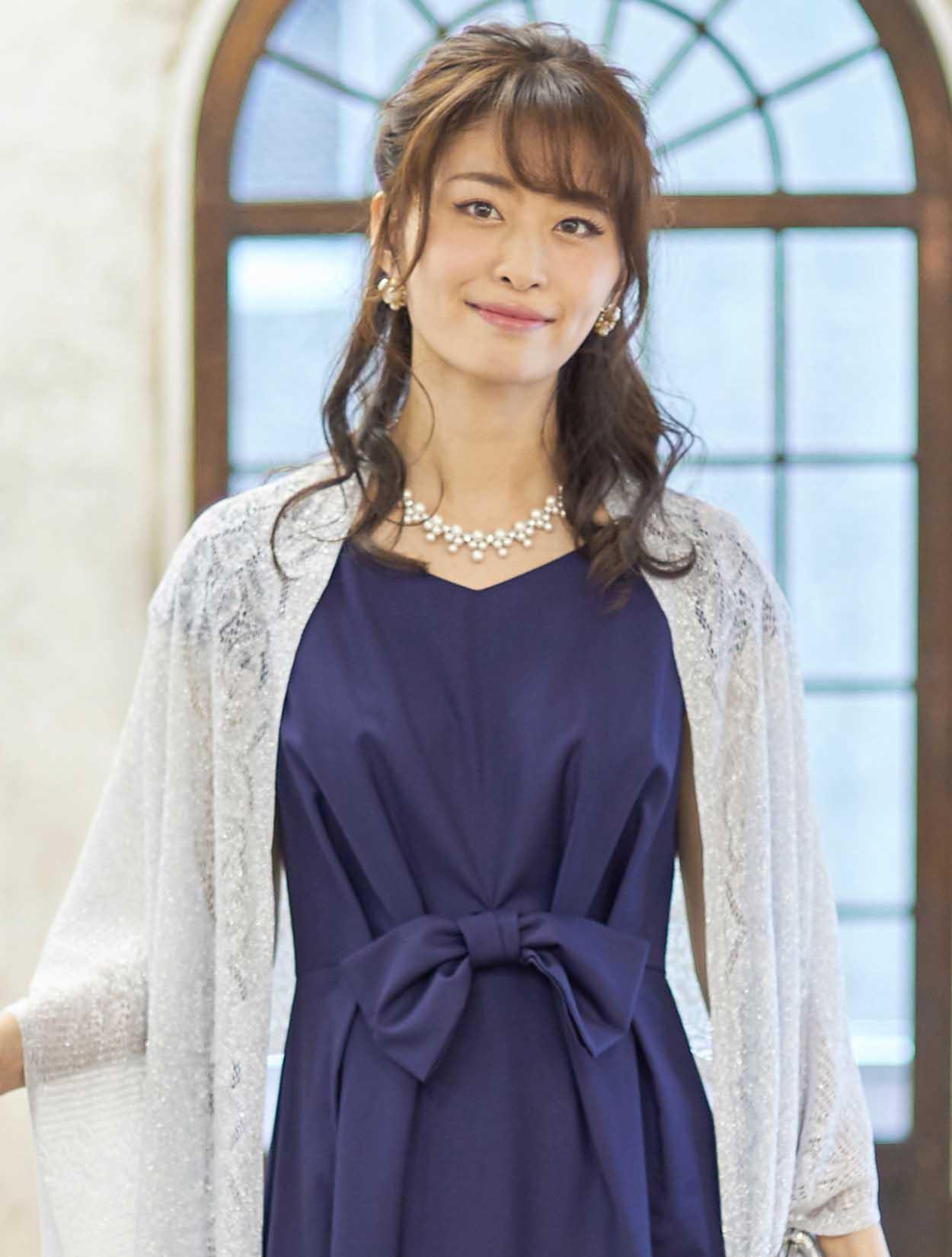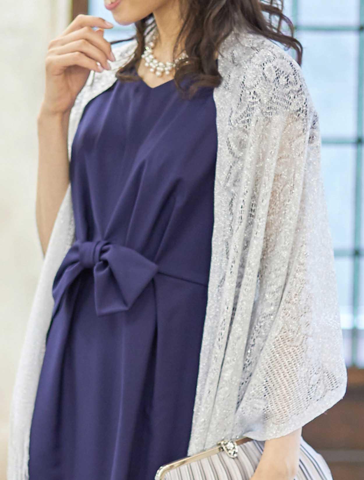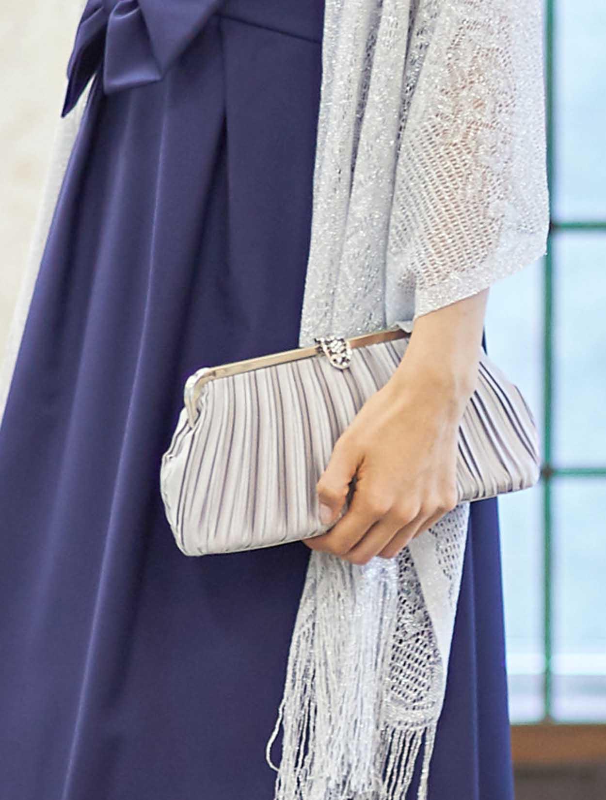 ■シルバーのラメストールが綺麗なブルーのドレスをさらに華やかにコーディネート。同色のバッグを持つ事で、統一感も出て上品な印象に。