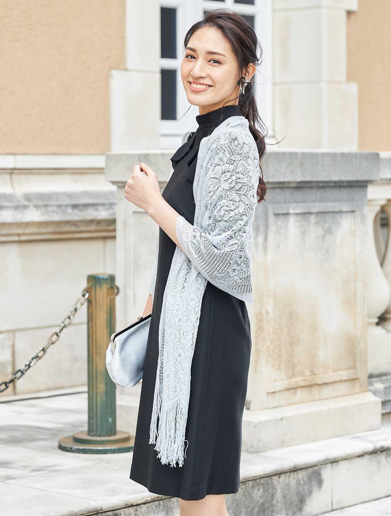 | A1. | お袖がしっかりあるタイプのドレスなので羽織がなくても安心してご着用頂けます。肩からお袖にかけてのデザインも良く見えます。 |
