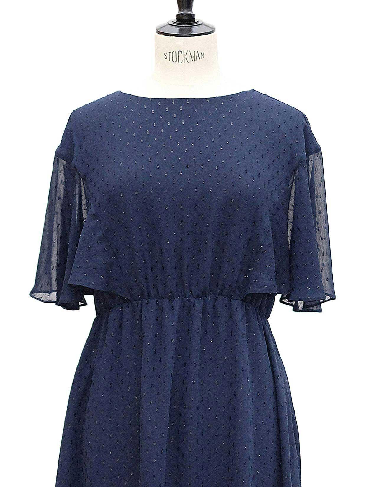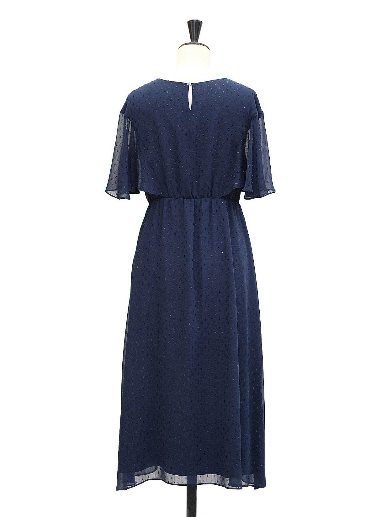 ■キラキラとさり気なく光るラメドットのドレス。プリントではなく立体的な織柄ですので、結婚式やパーティーでも気兼ねなくご着用いただけます。