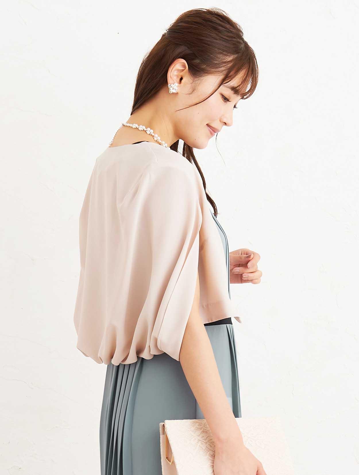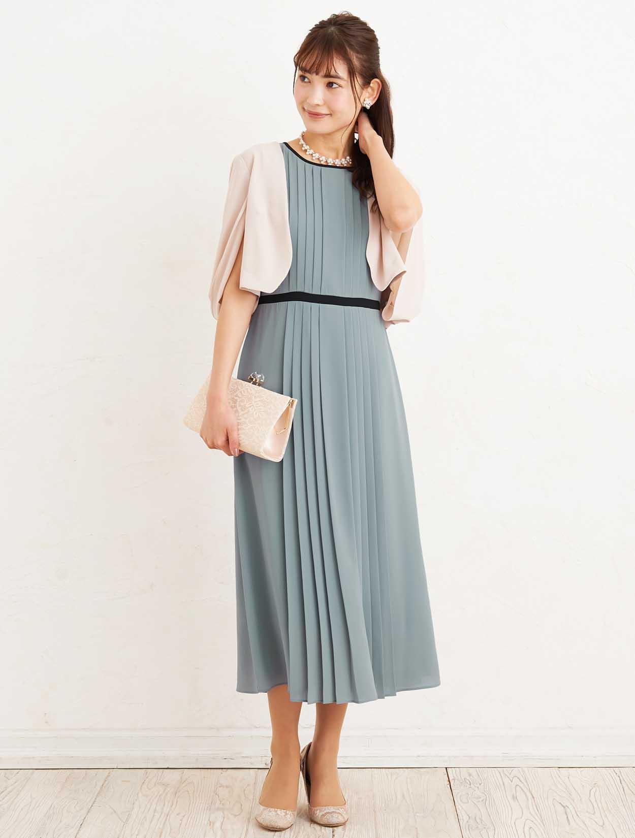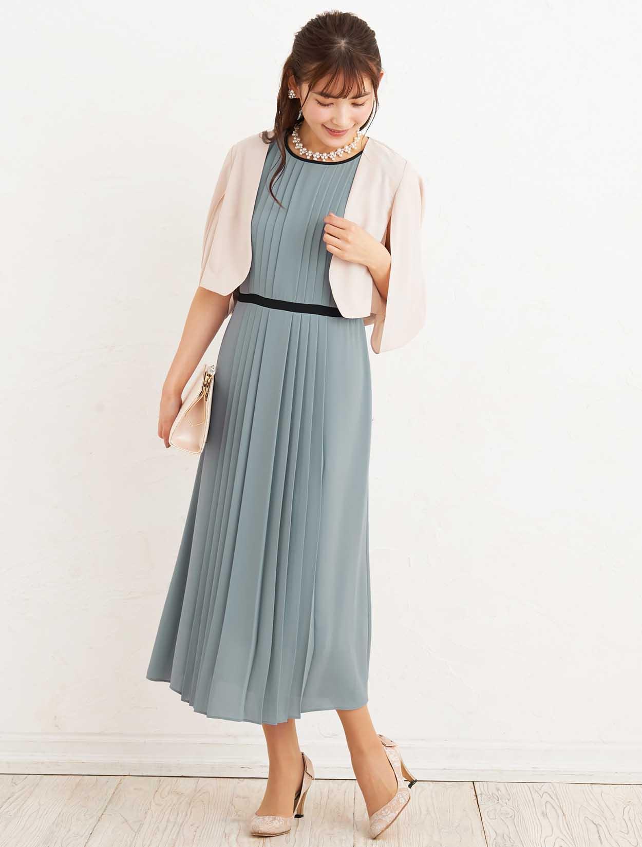 ■上品なサックスブルーのドレスにジャケットボレロを合わせた大人スタイルは、どんなシーンにも活躍できるコーディネートです。