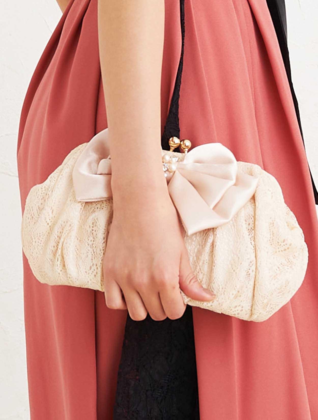 ■小物をベージュで統一し、優し気な印象を与えてくれます。華やかなスカラップ調のネックレスも相性GOOD。