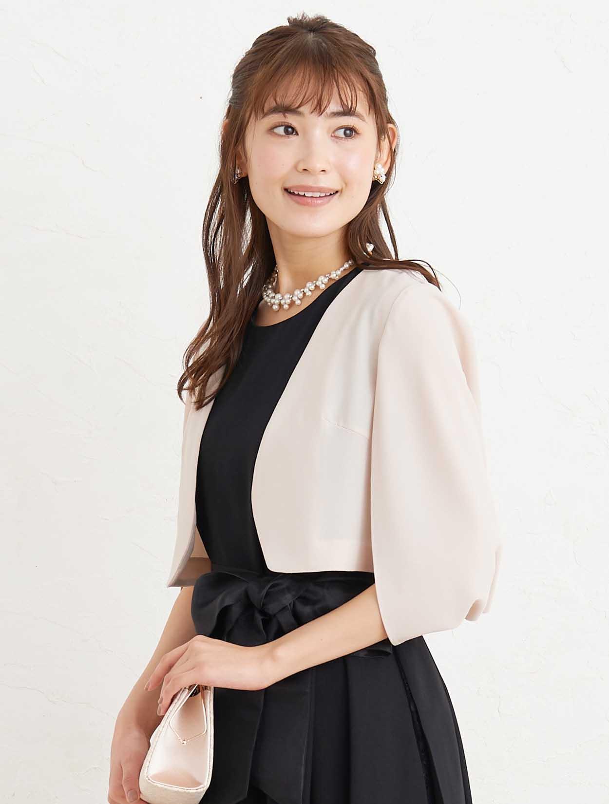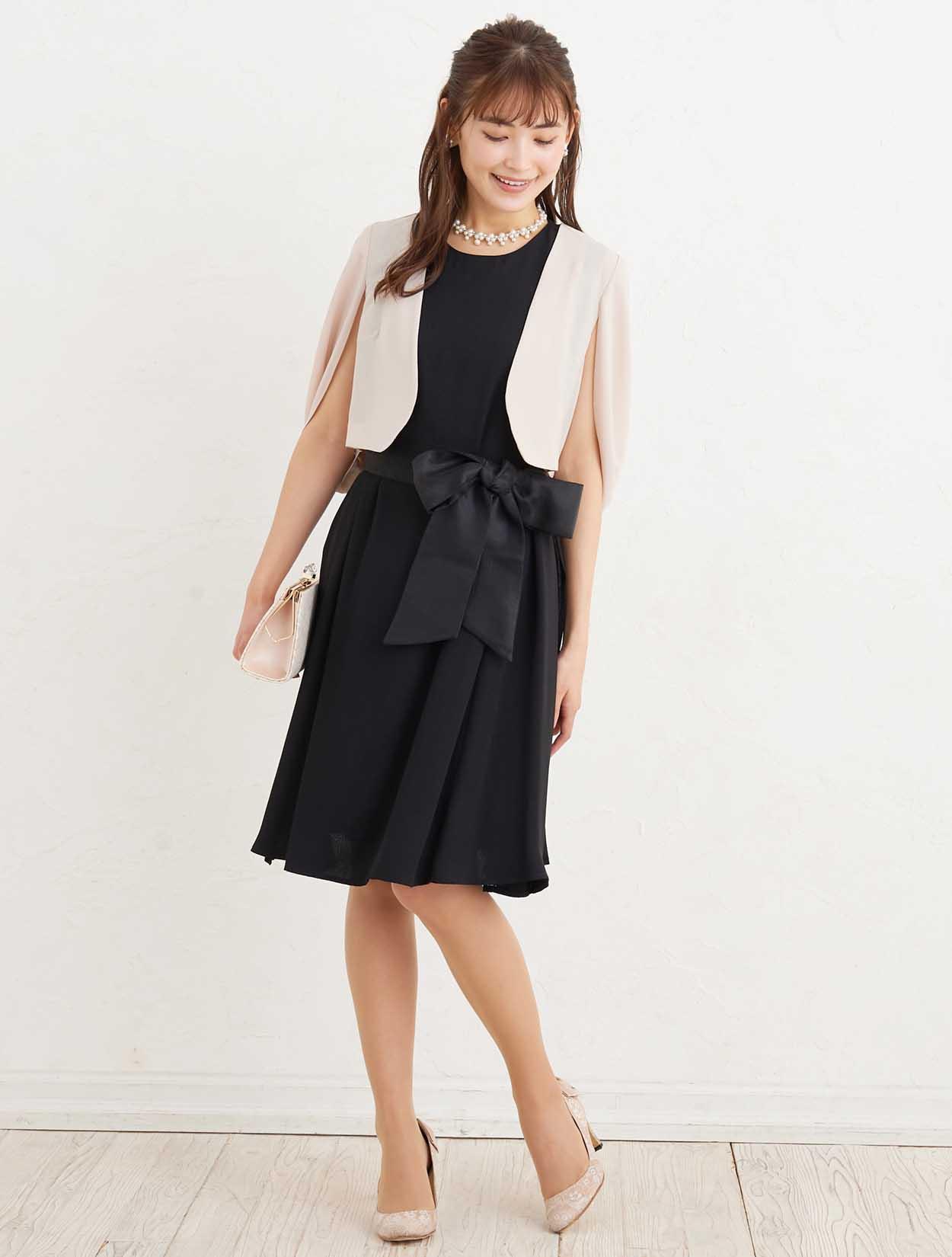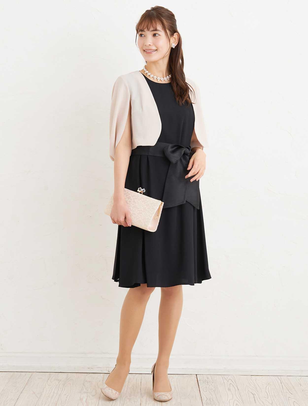 ■ブラックのマタニティドレスに、ジャケットボレロを合わせた落ち着いたコーディネートはご親族様にもおすすめです。
