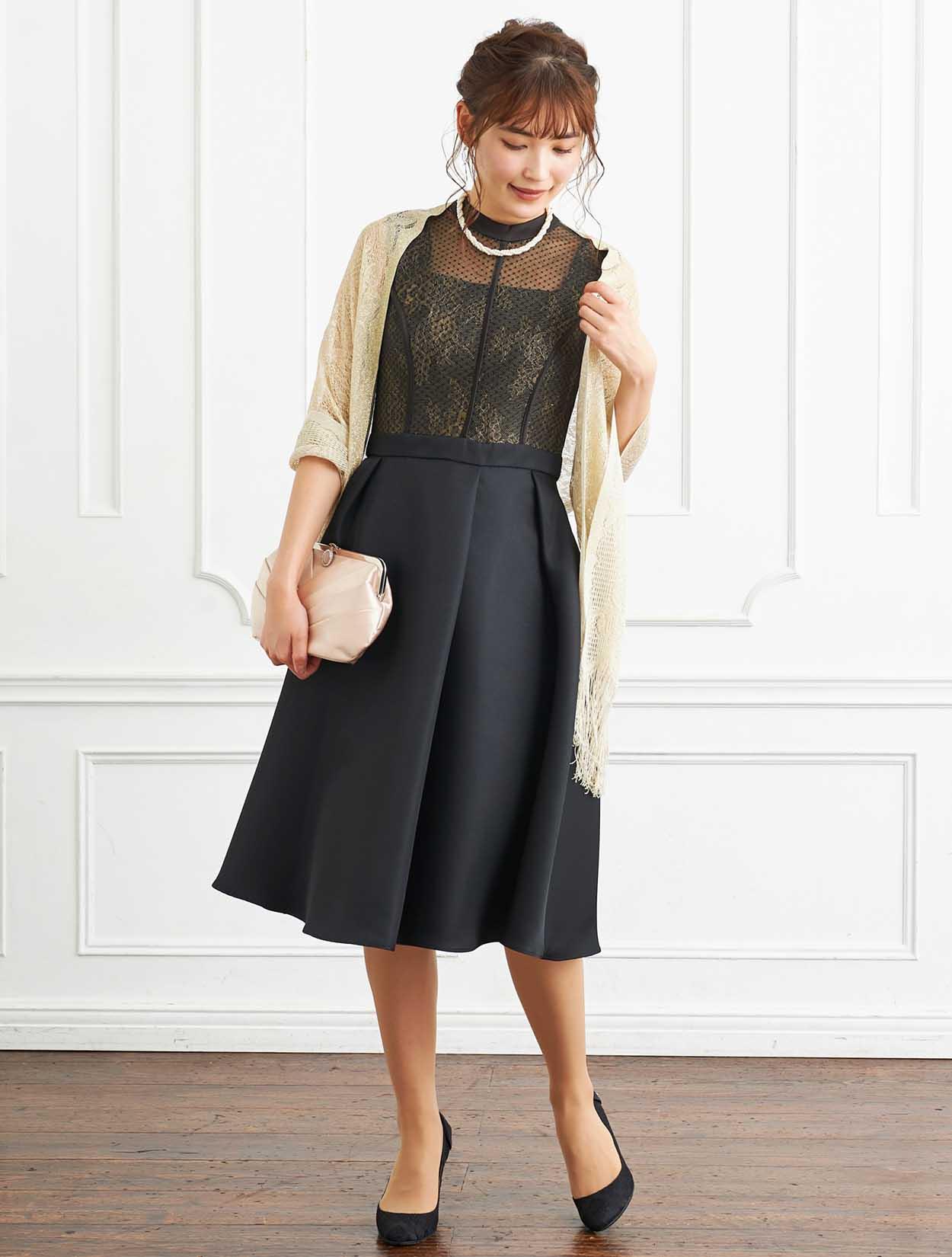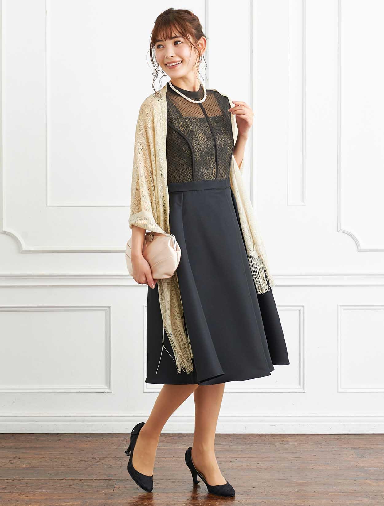 ■繊細な花柄にドットチュールを重ねたエレガントなドレス。