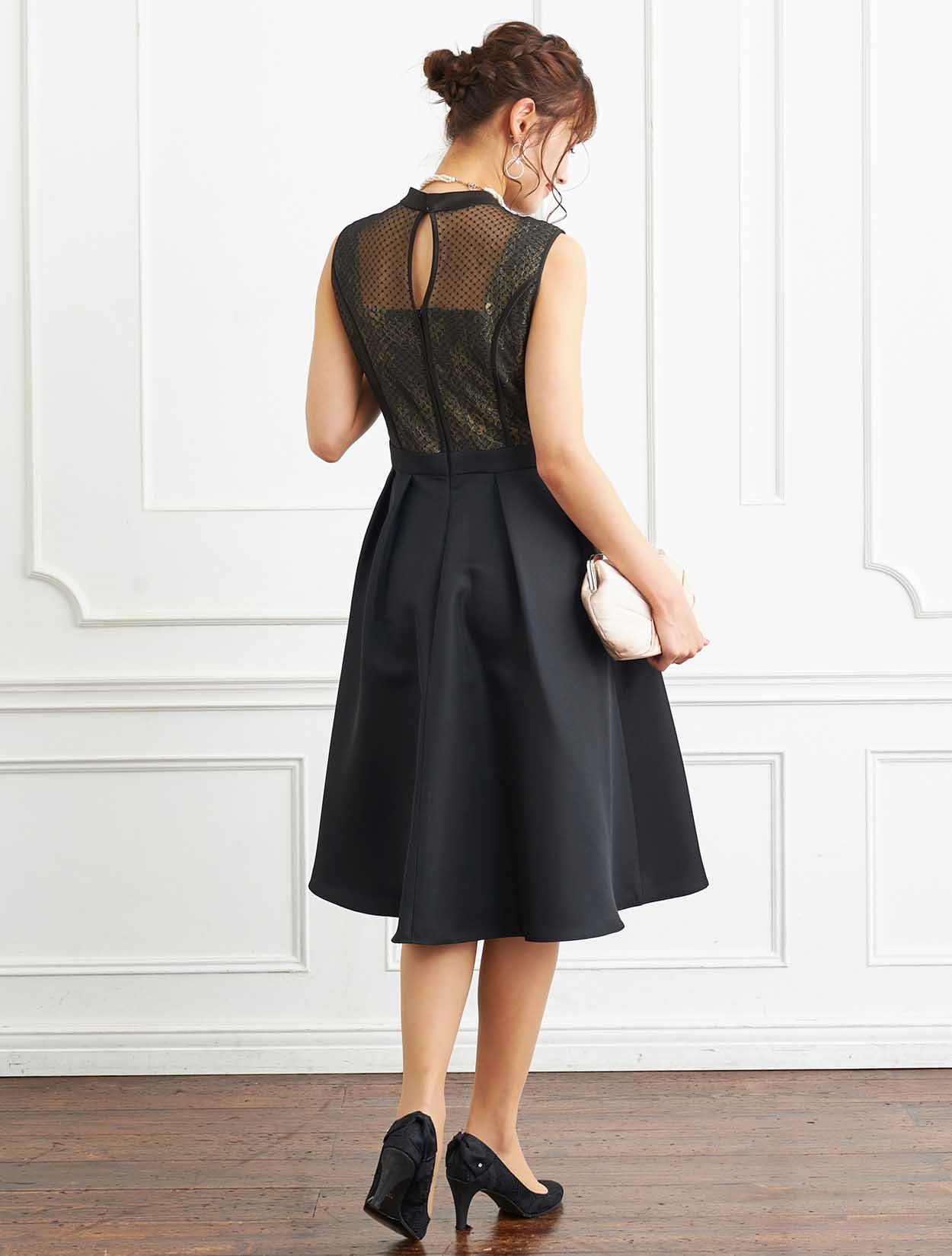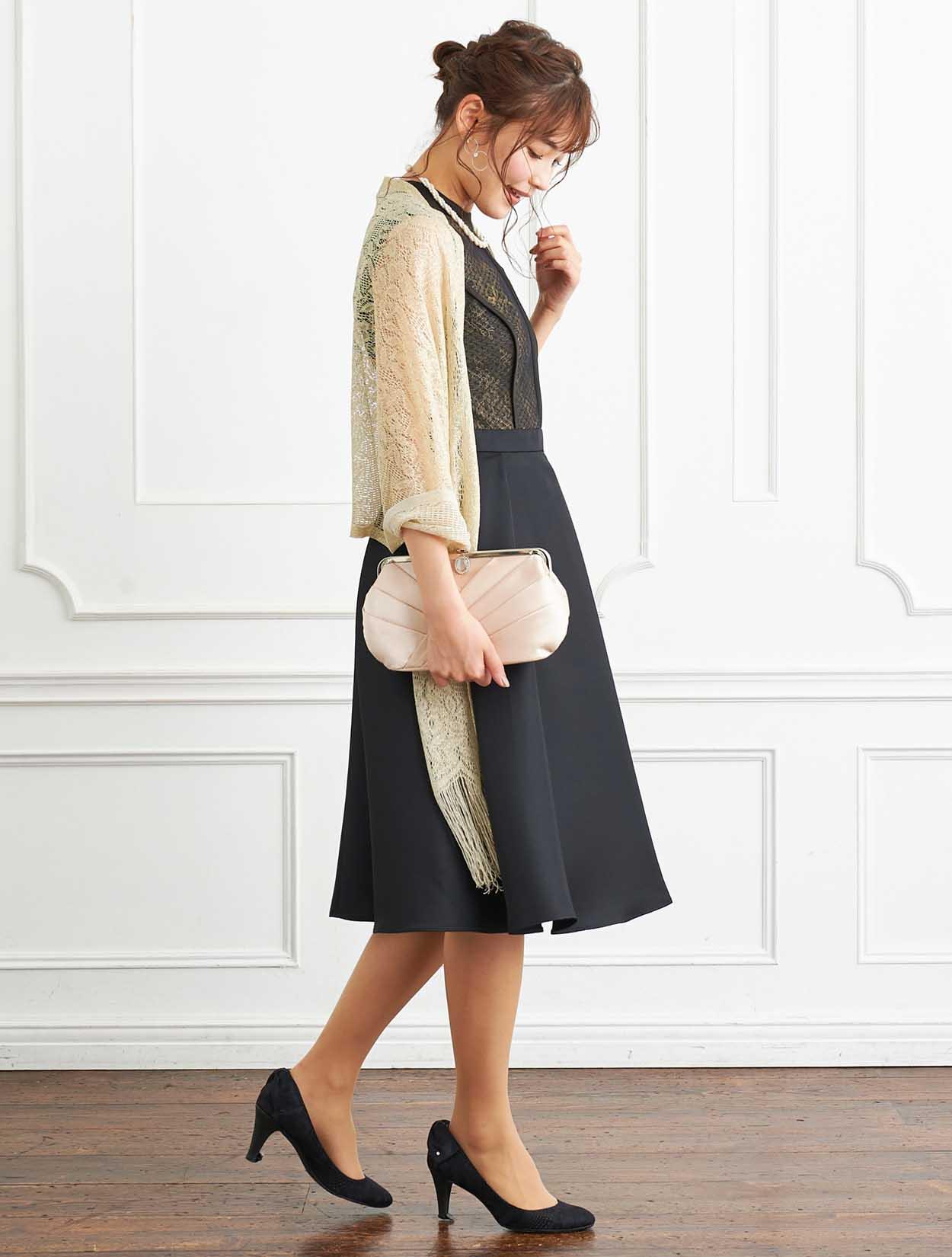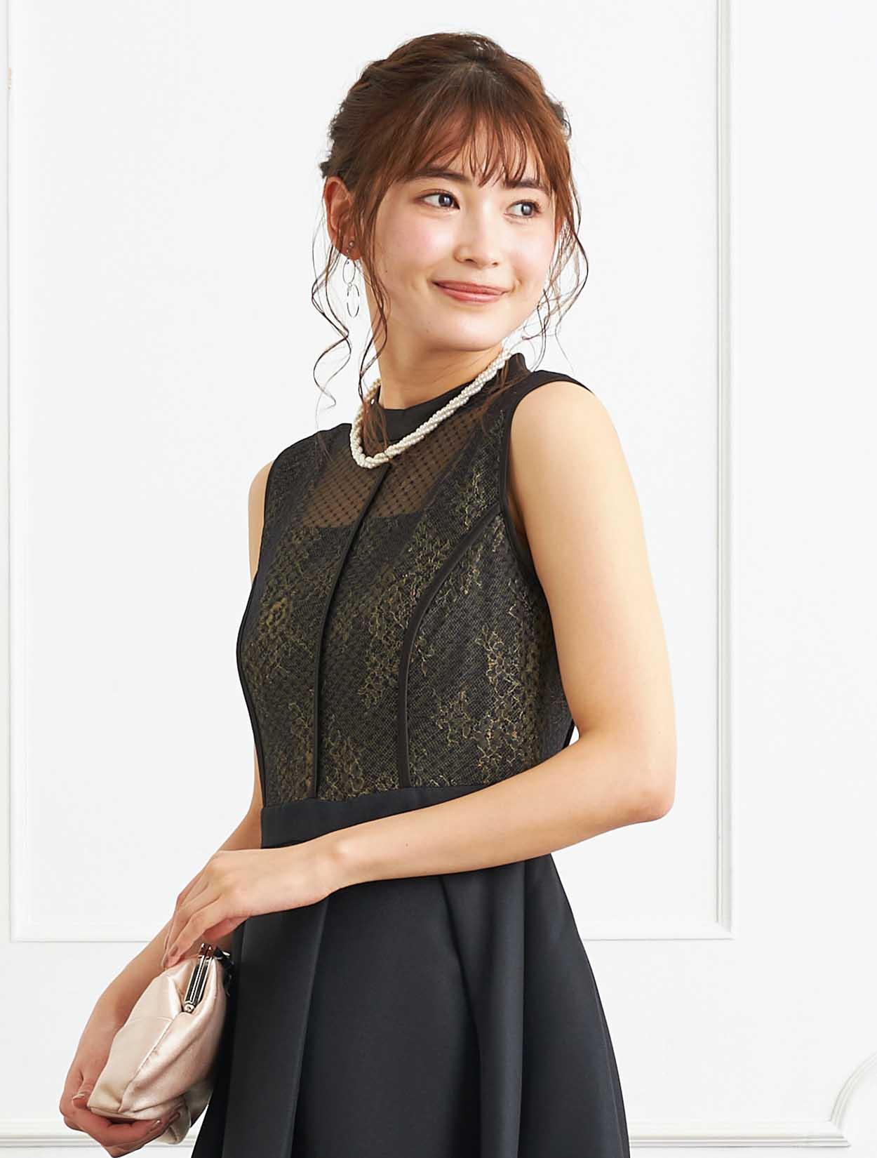 ■上半身にゴールドのレースを使い、ブラックでも重たくないデザインに。