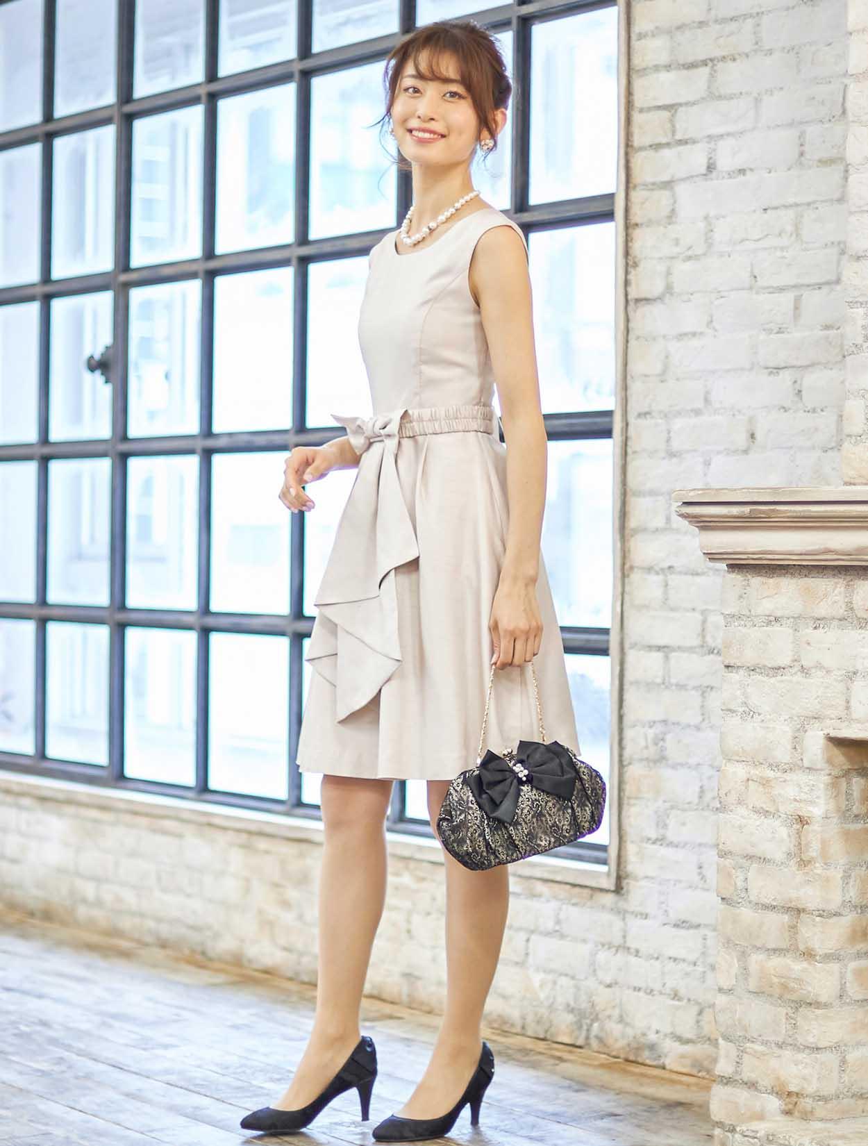 | A2. | ベージュのドレスですので、全体的に白っぽくならないよう黒の小物でコーディネートしております。明るいベージュですので、白っぽさが気になる方はご結婚式では控えたほうがよいかもしれません。 |