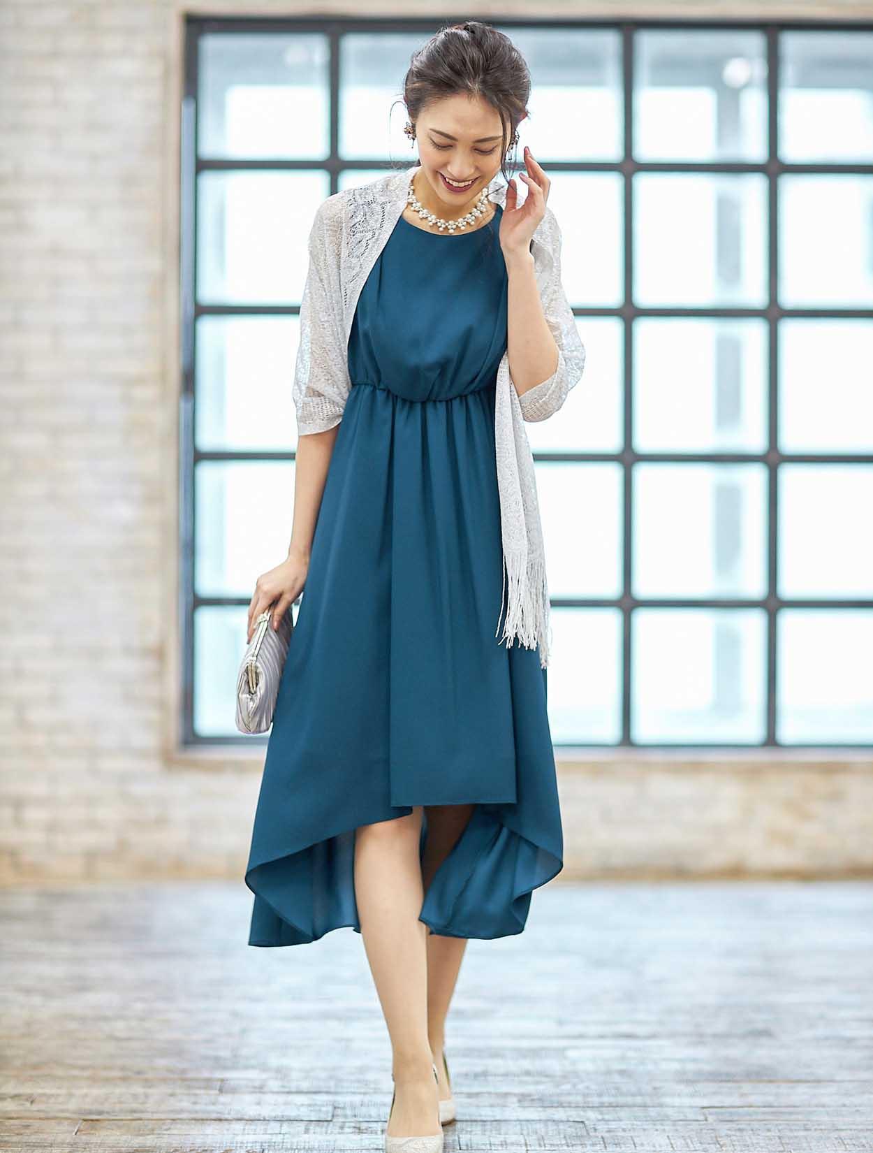 | A2. | 色の感じ方は個人差がございますが、こちらのドレスのお色は、ブルーとグリーンの中間くらいのお色になります。 |