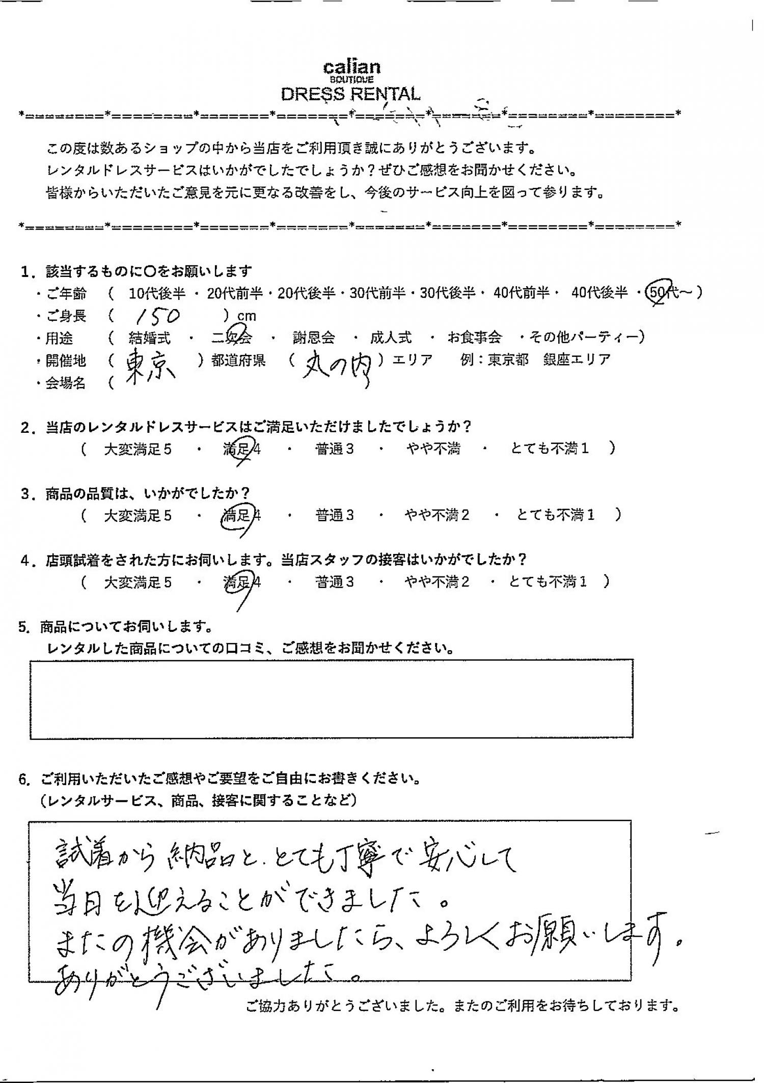 試着から納品と、とても丁寧で安心して当日を迎えることができました。