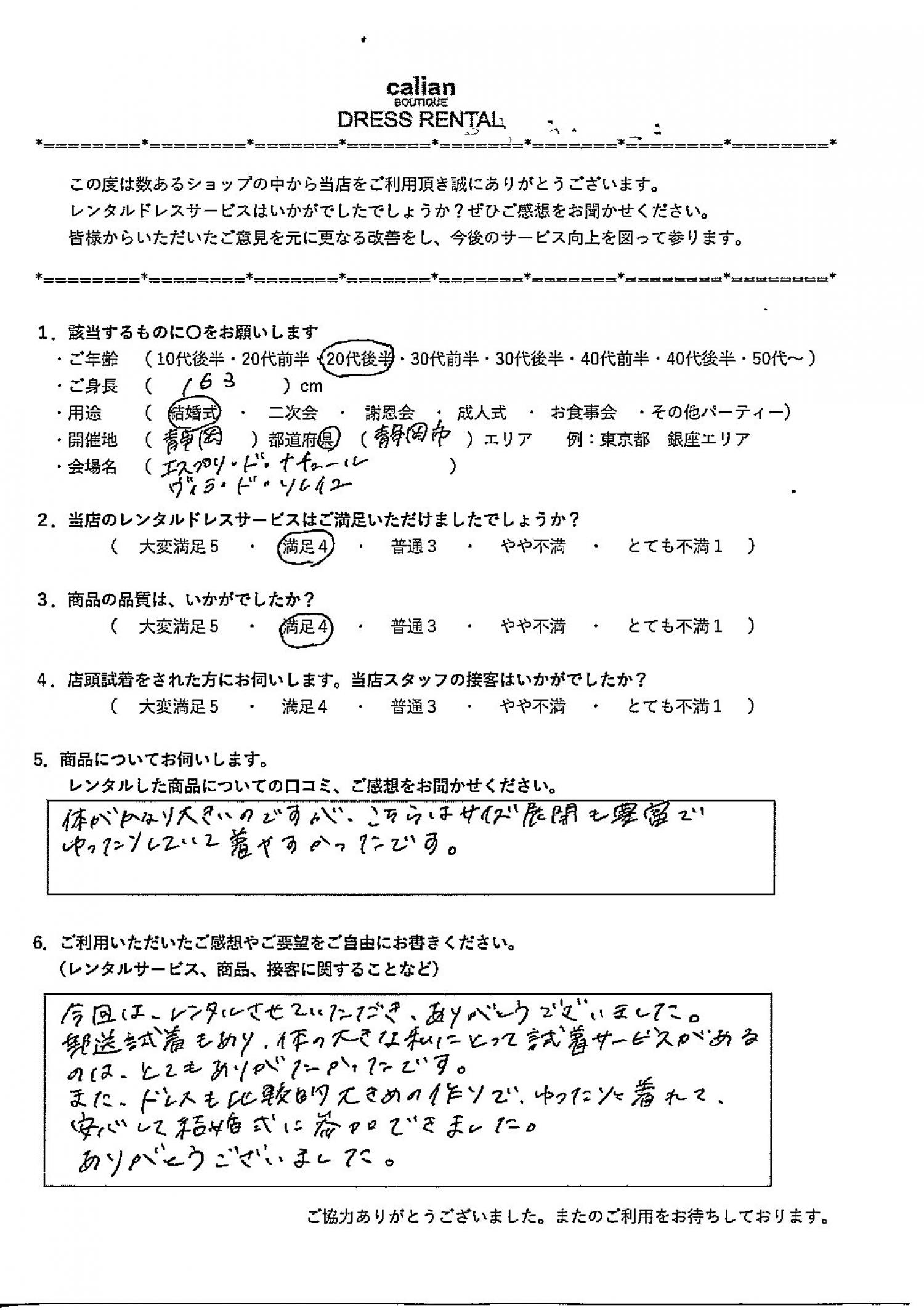 また、ドレスも比較的大きめの作りでゆったり着れて、安心して結婚式に参加できました。