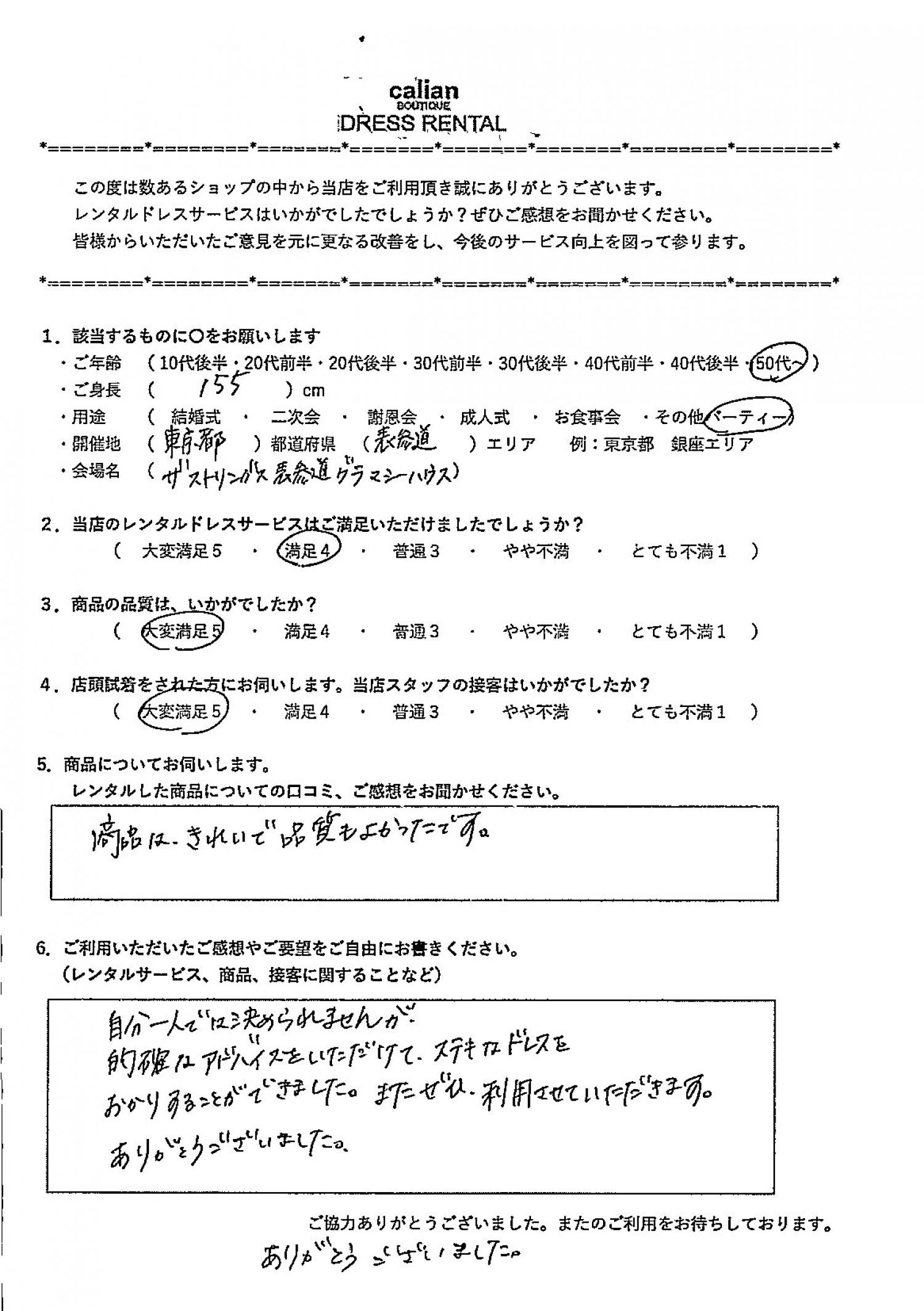 自分一人では決められませんが、的確なアドバイスをいただけてステキなドレスをおかりすることができました。またぜひ利用させていただきます。