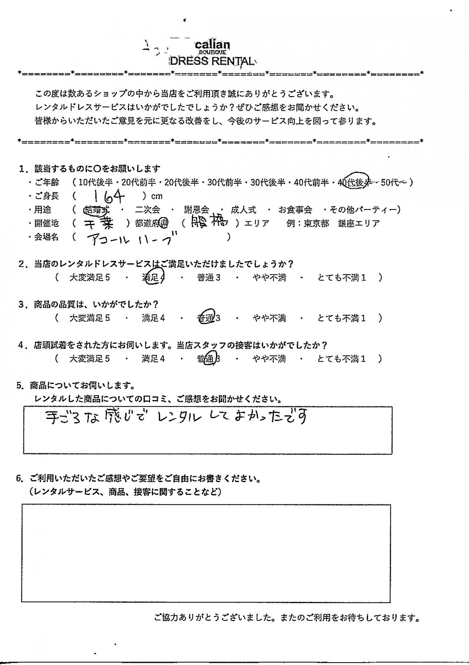 2.当店のレンタルドレスサービスはご満足いただけましたでしょうか?