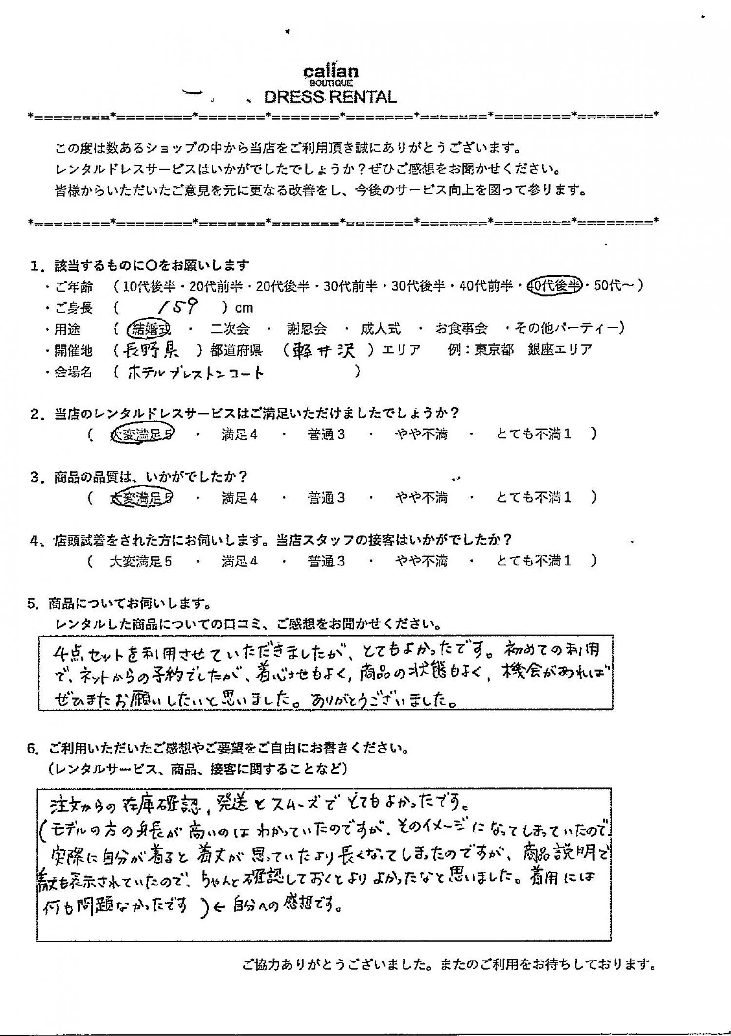 2.当店のレンタルドレスサービスはご満足いただけましたでしょうか?