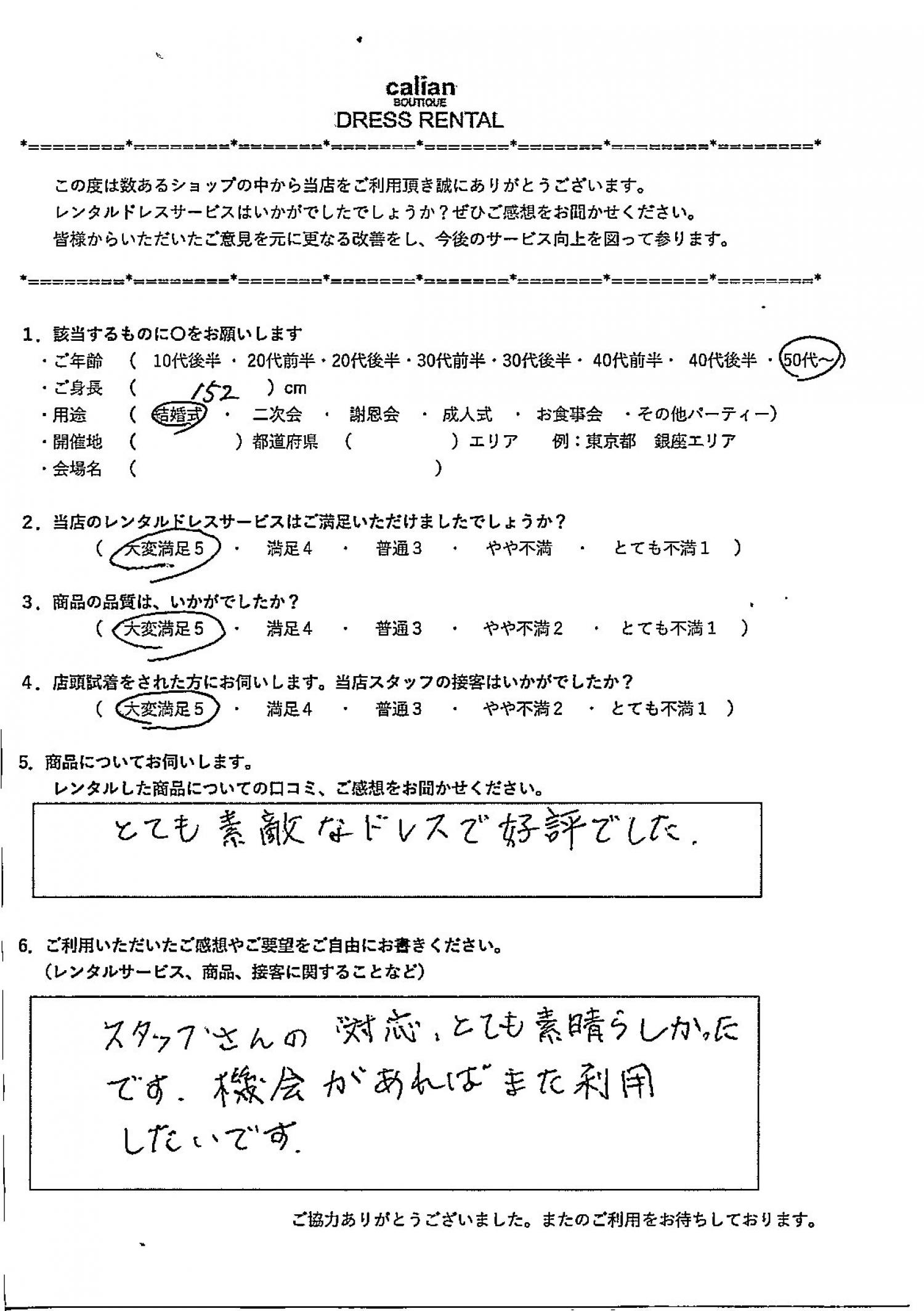 2.当店のレンタルドレスサービスはご満足いただけましたでしょうか?