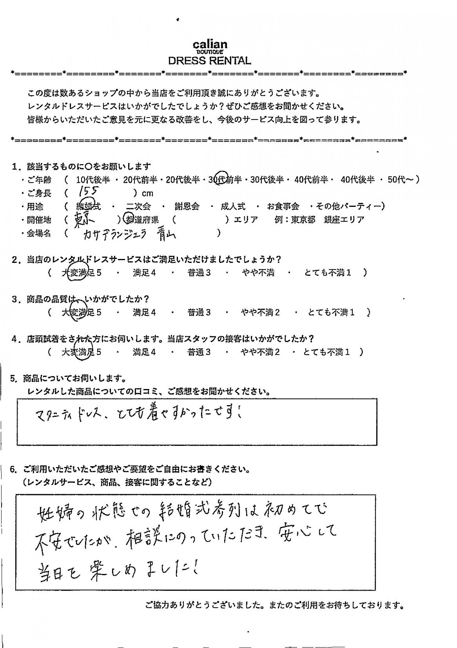 妊婦の状態での結婚式参列は初めてで不安でしたが、相談にのっていただき安心して当日も楽しめました!