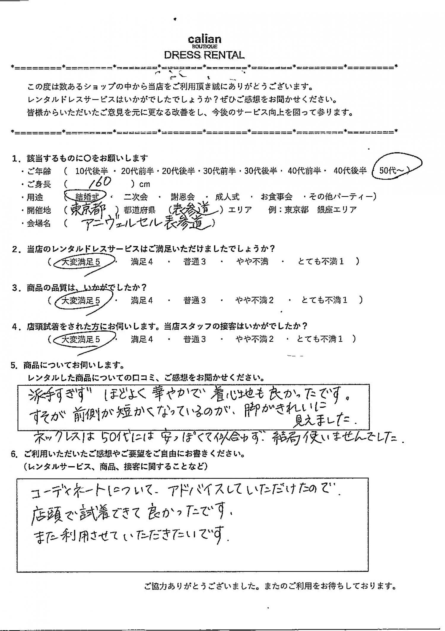 2.当店のレンタルドレスサービスはご満足いただけましたでしょうか?