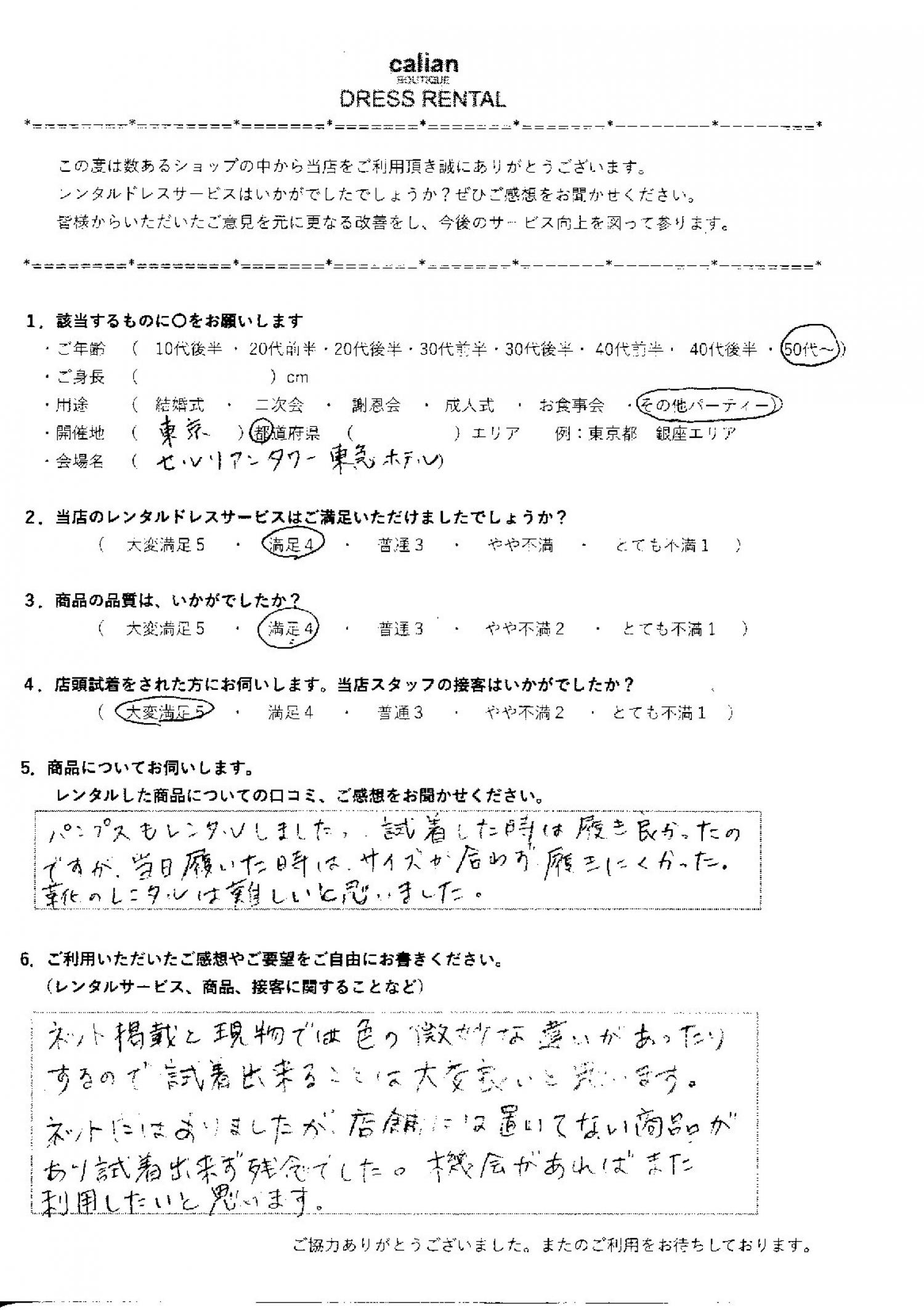 パンプスもレンタルしました。試着した時は履き良かったのですが、当日履いた時はサイズが合わず、履きにくかった。靴のレンタルは難しいと思いました。