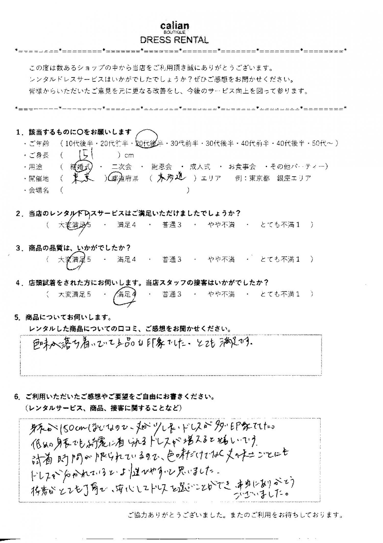 2.当店のレンタルドレスサービスはご満足いただけましたでしょうか?