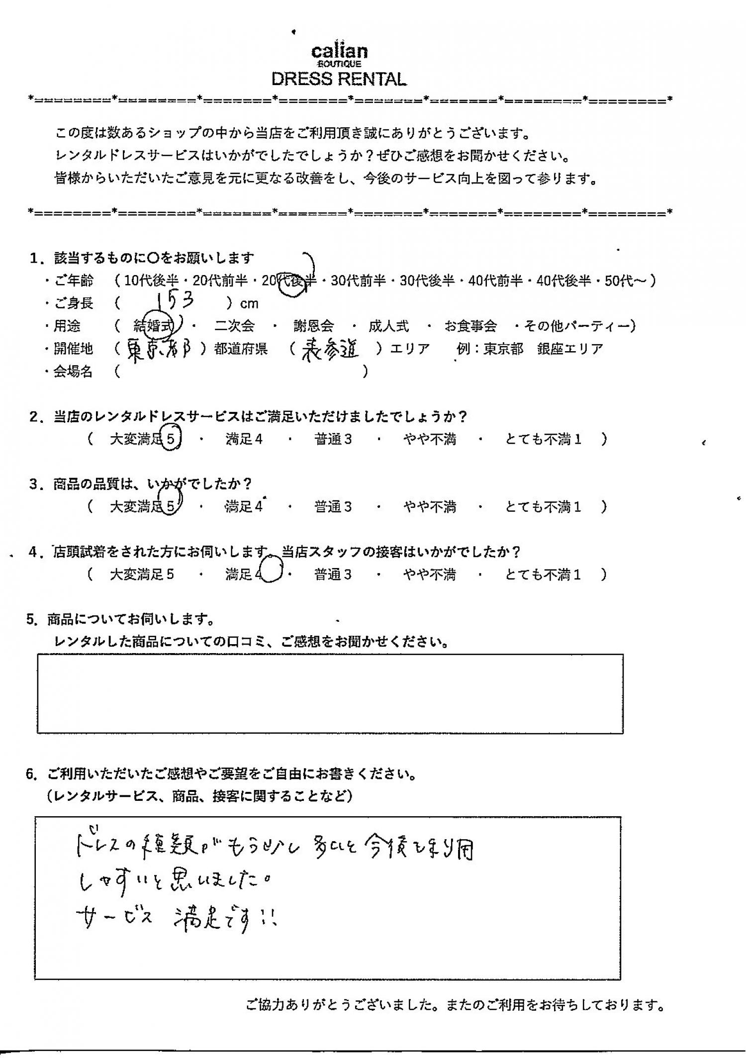 2.当店のレンタルドレスサービスはご満足いただけましたでしょうか?