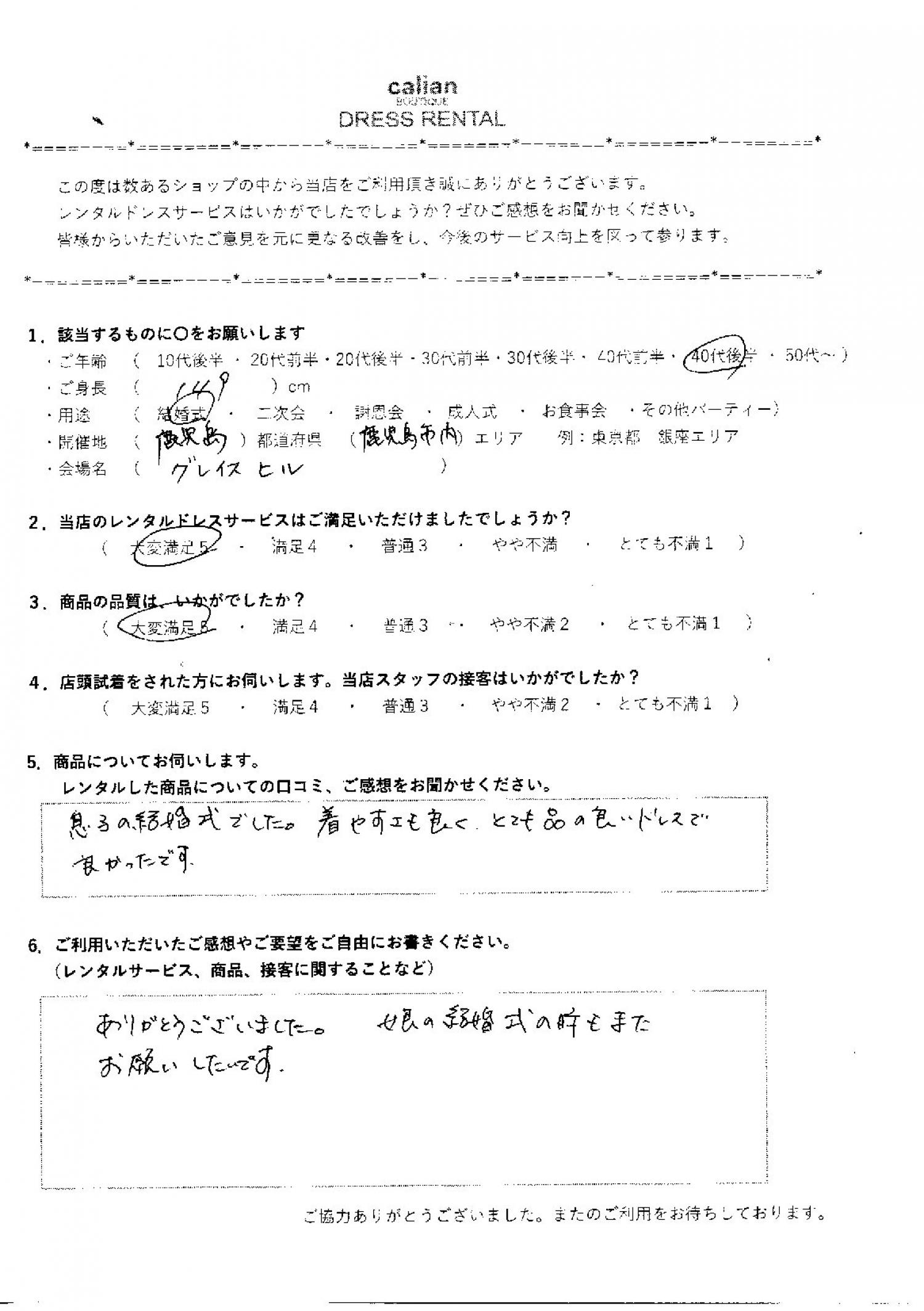 ありがとうございました。娘の結婚式の時もまたお願いしたいです。