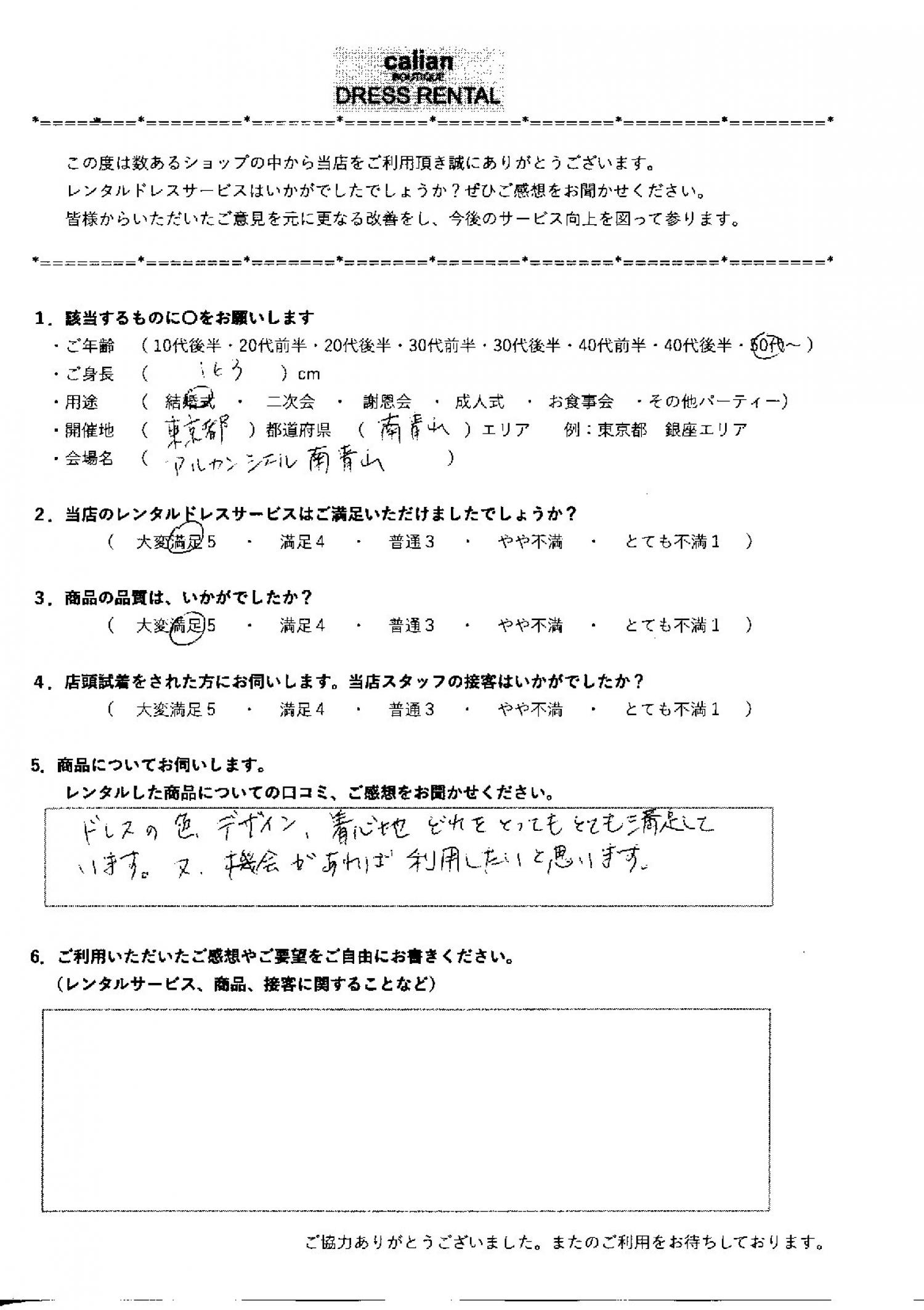 ドレスの色、デザイン、着心地、どれをとってもとても満足しています。又、機会があれば利用したいです。