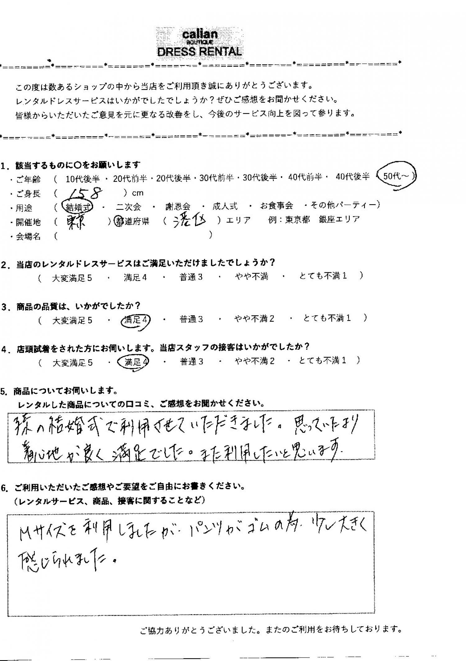 孫の結婚式で利用させていただきました。思っていたより着心地が良く満足でした。また利用したいです。