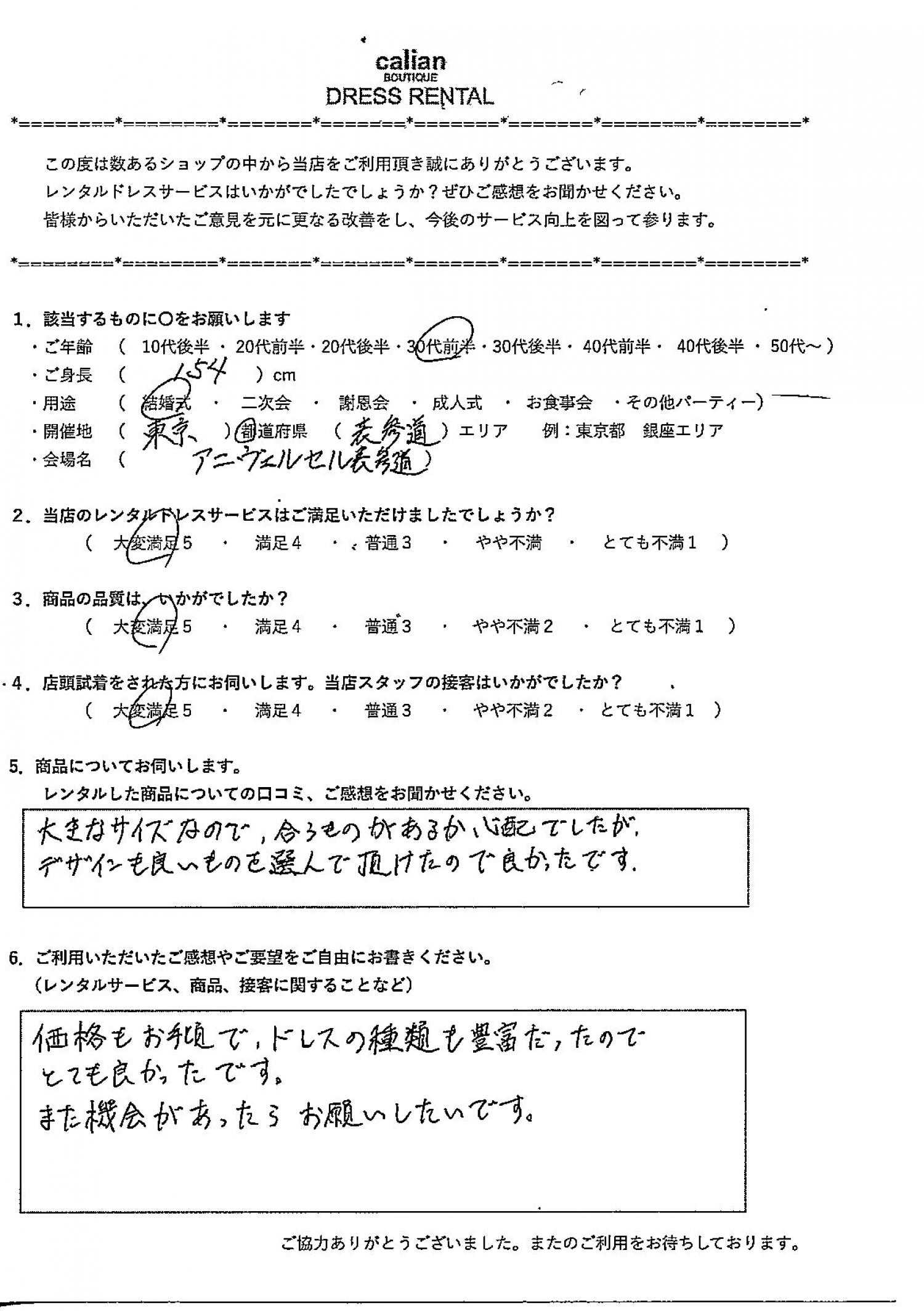 価格もお手頃で、ドレスの種類も豊富だったのでとても良かったです。