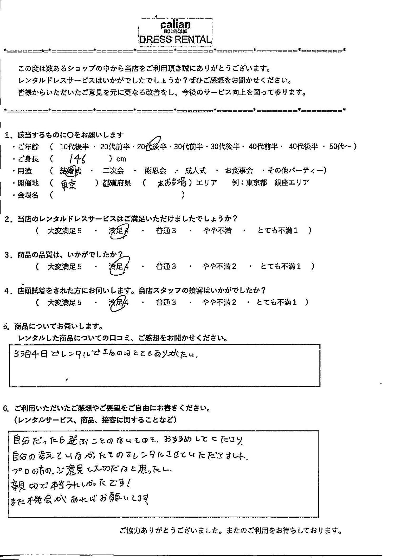 2.当店のレンタルドレスサービスはご満足いただけましたでしょうか?
