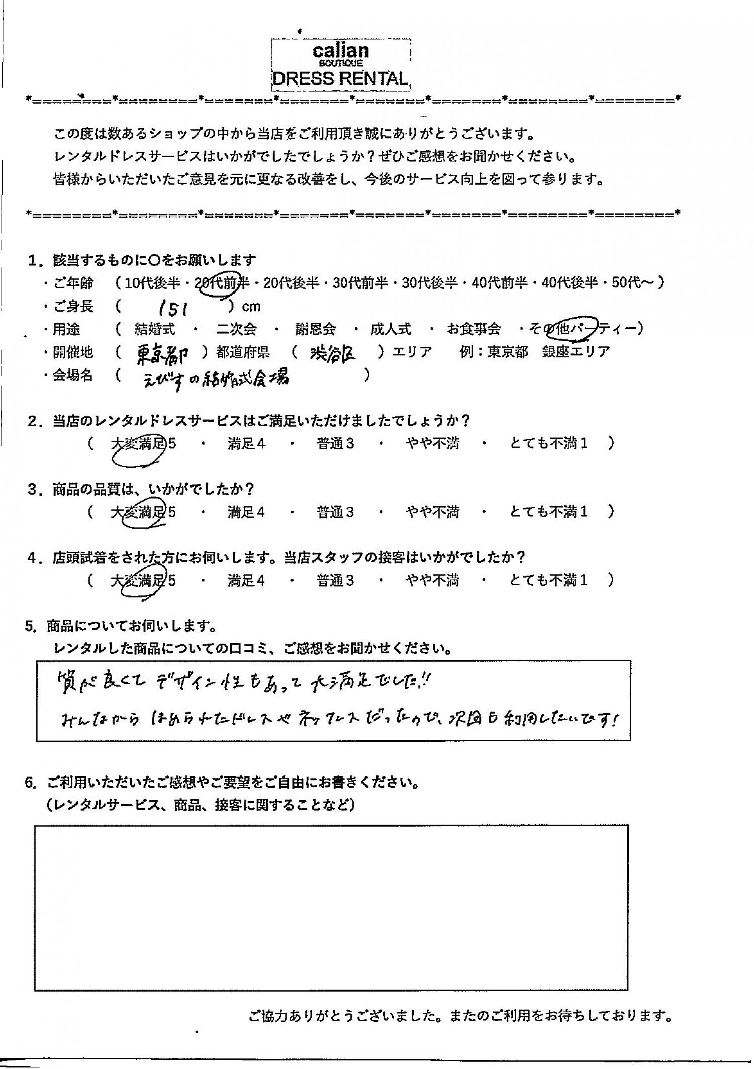 2.当店のレンタルドレスサービスはご満足いただけましたでしょうか?