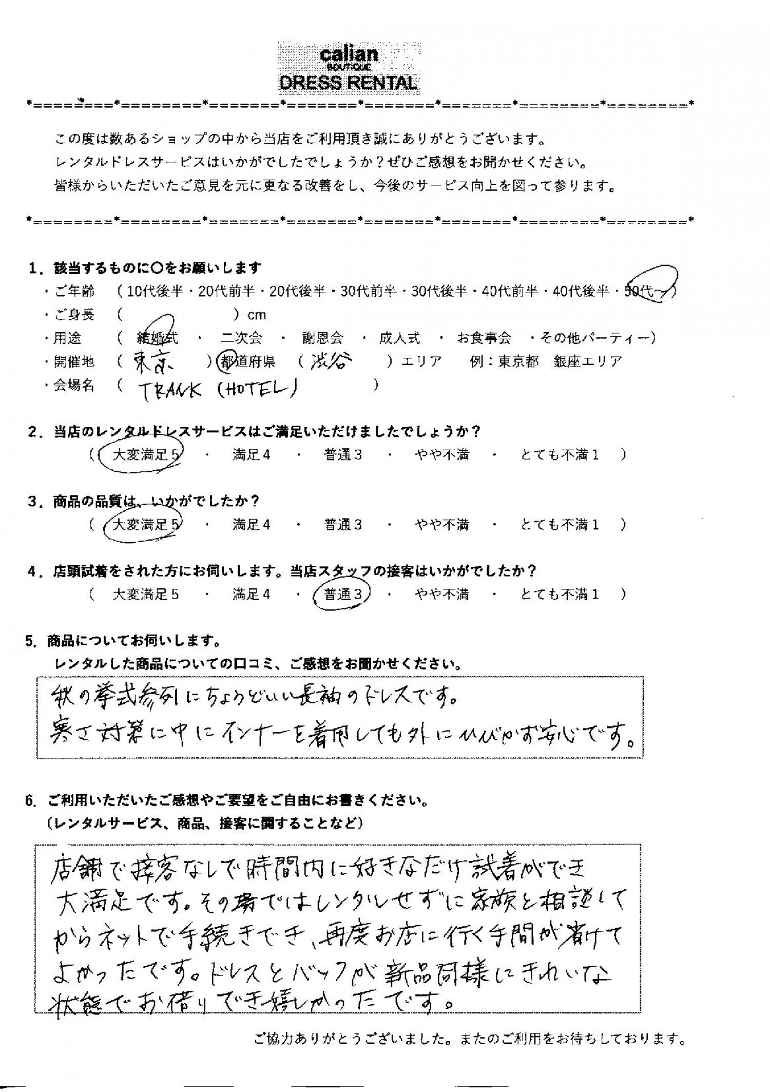 秋の挙式参列にちょうどいい長袖のドレスです。