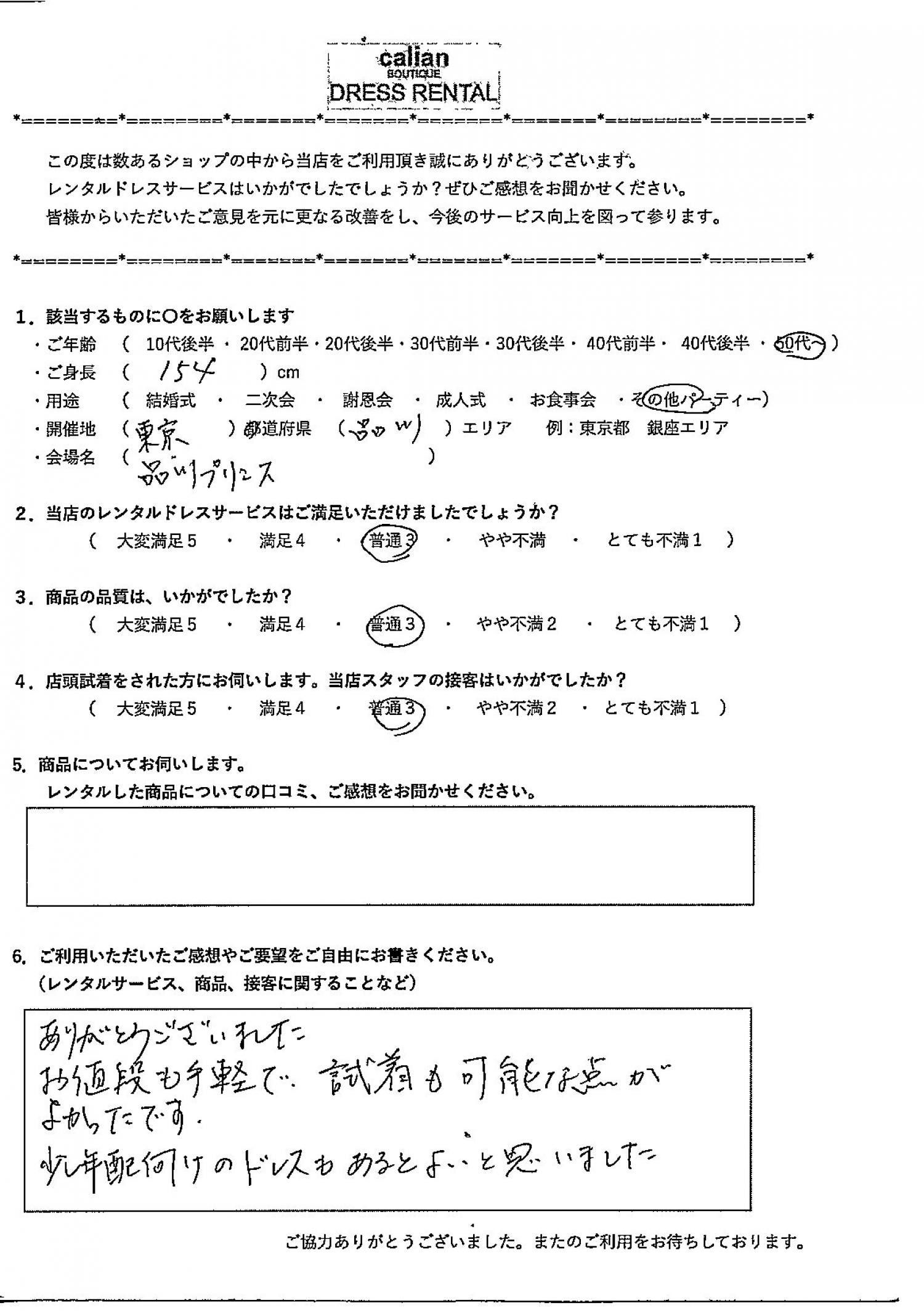 少し年配向けのドレスもあるとよいと思いました。