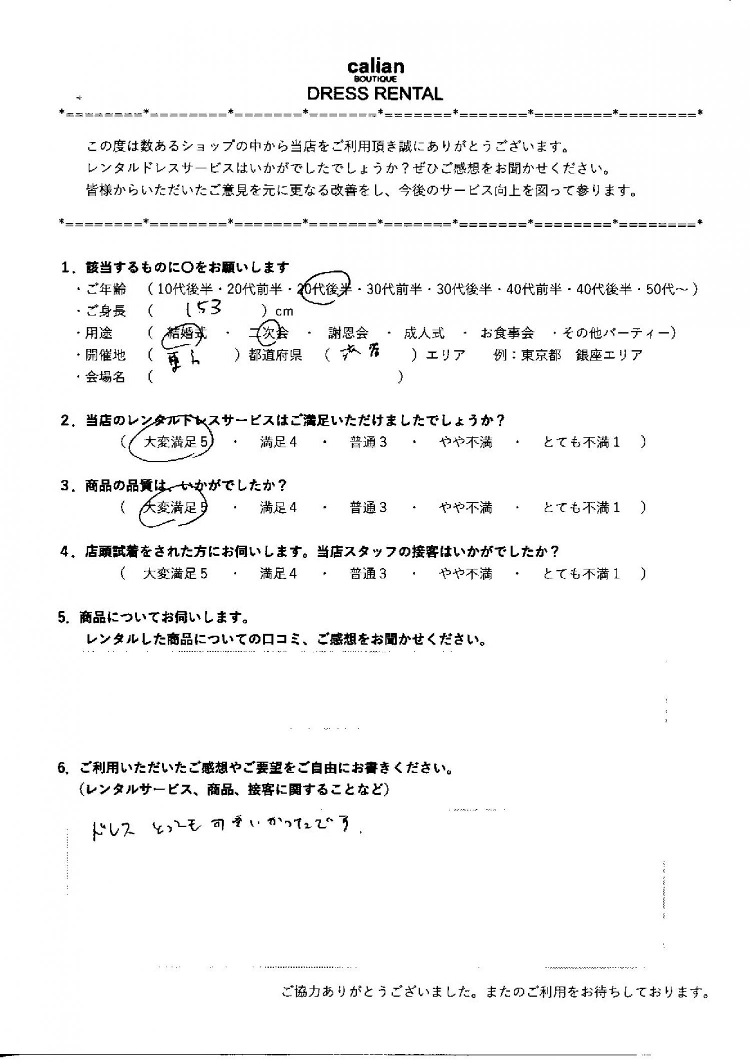 2.当店のレンタルドレスサービスはご満足いただけましたでしょうか?