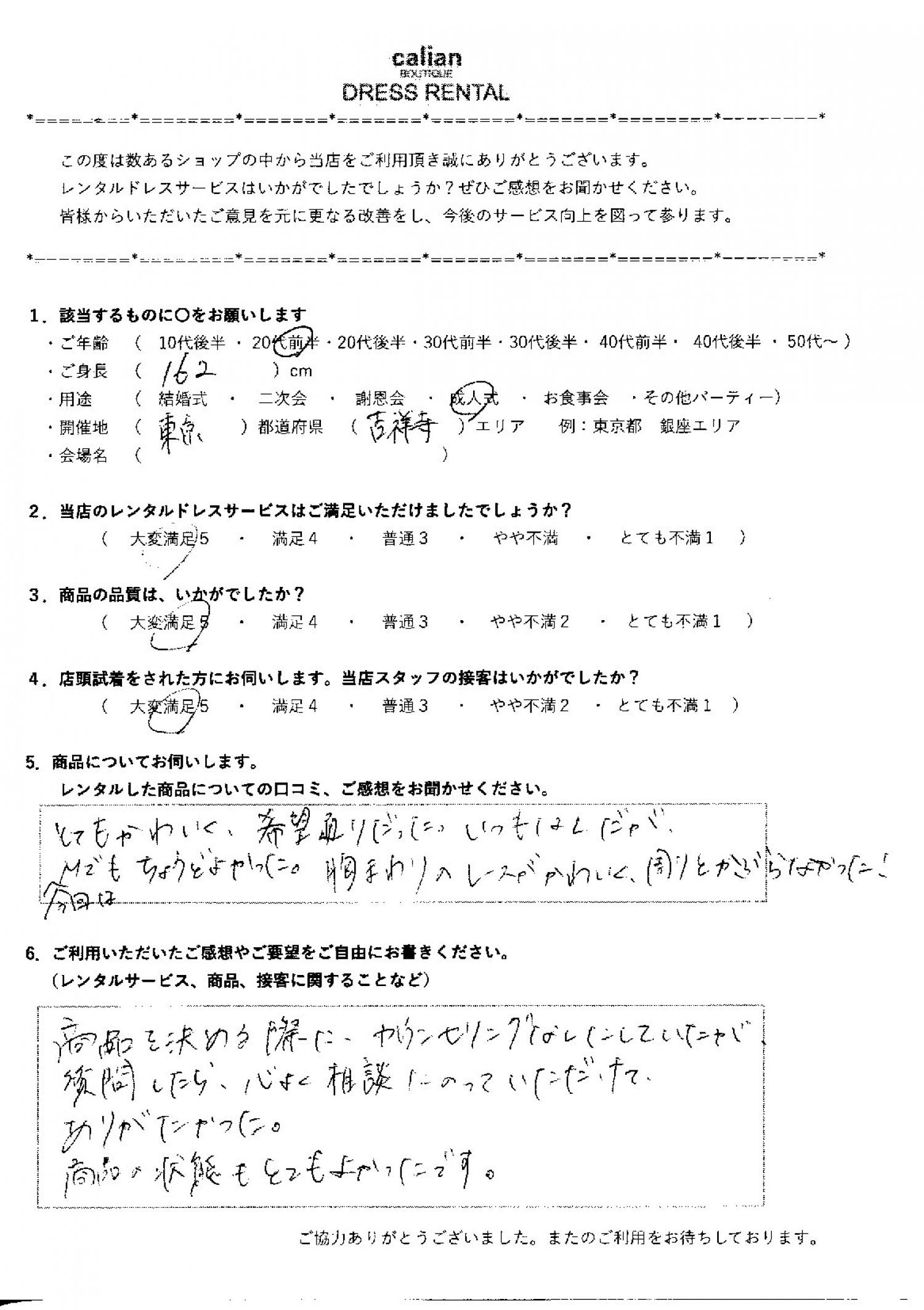2.当店のレンタルドレスサービスはご満足いただけましたでしょうか?