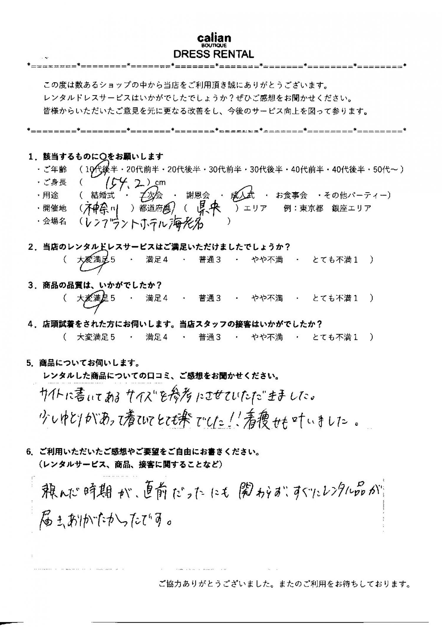 2.当店のレンタルドレスサービスはご満足いただけましたでしょうか?