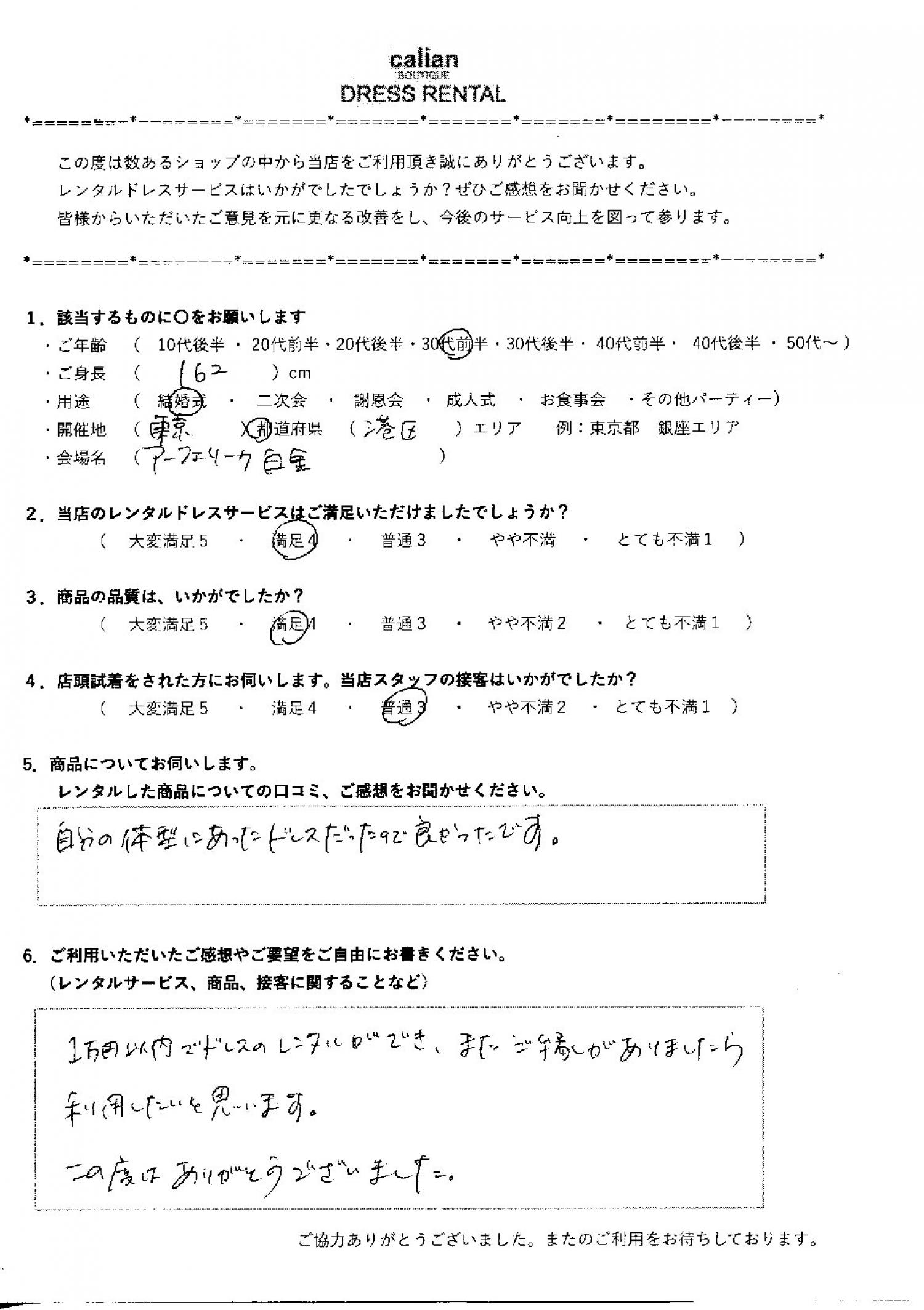 2.当店のレンタルドレスサービスはご満足いただけましたでしょうか?